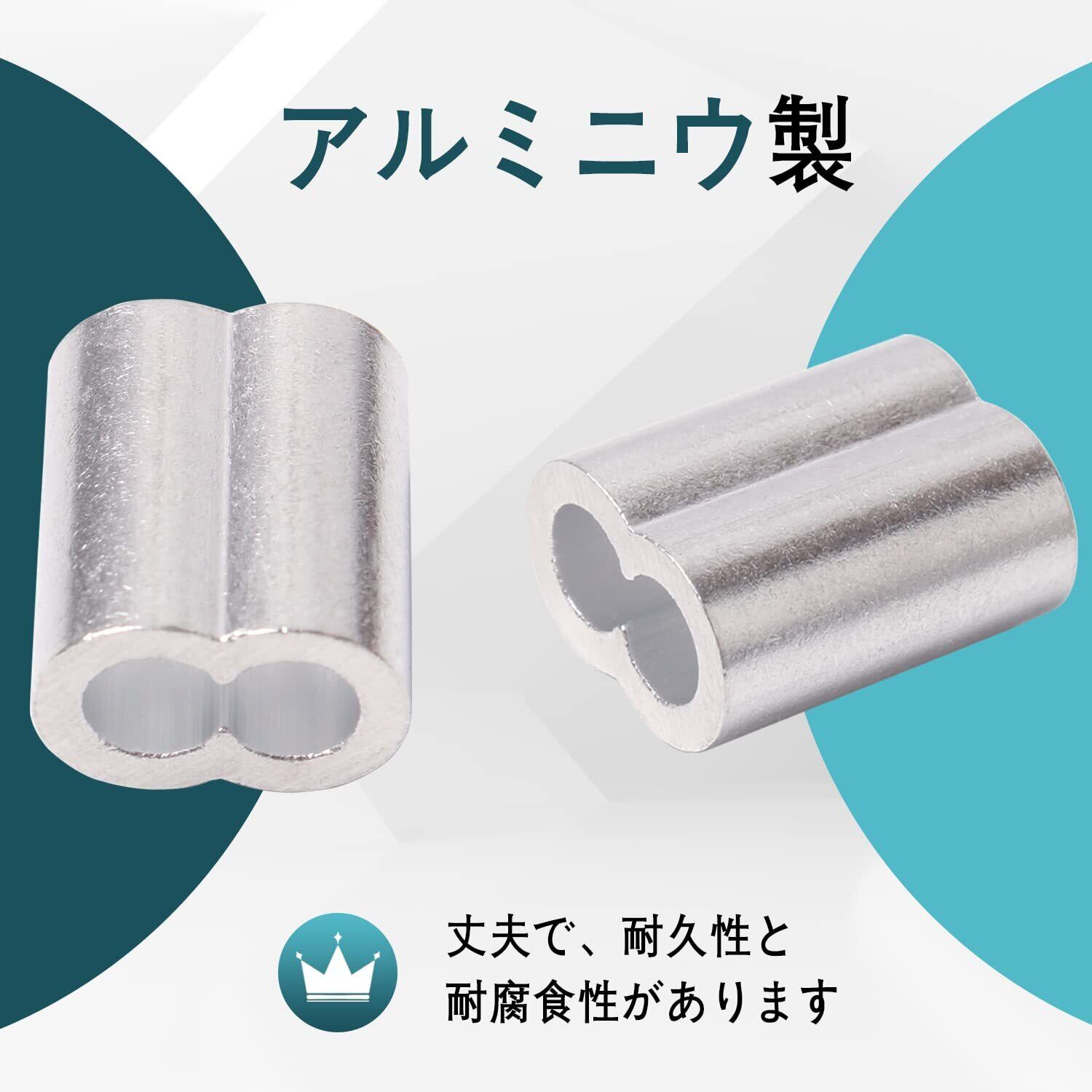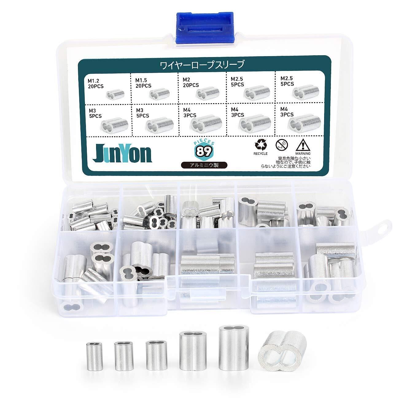 ワイヤーロープスリーブ アルミスリーブ 圧着ループスリーブ ロープチャック シルバー アルミニウム 6サイズセット(M1.2,M1.5,M2,M2.5,M3,M4) 89個入り