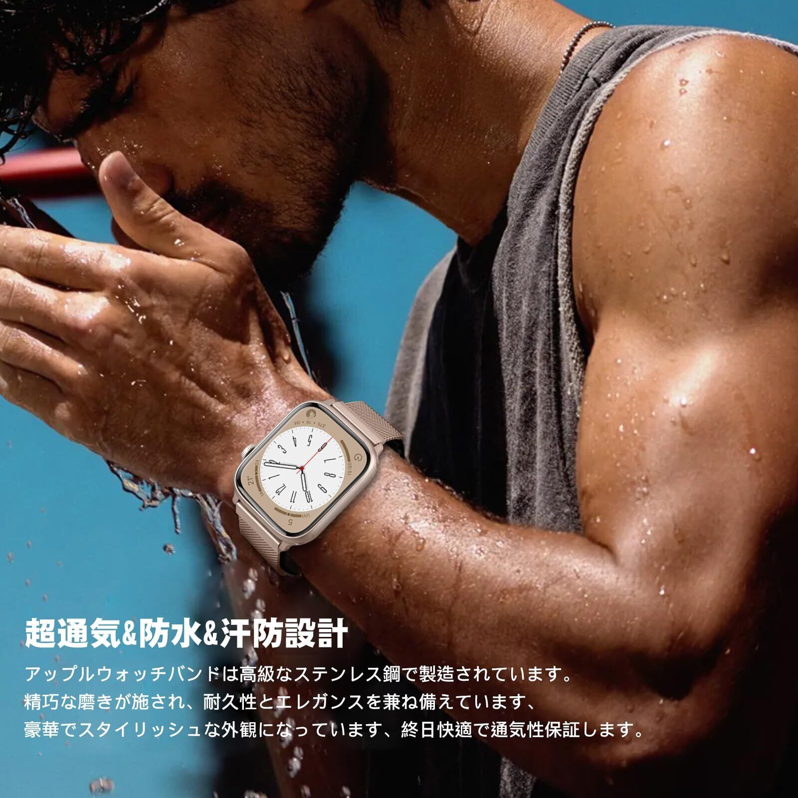 【優れた通気性】アップルウォッチ ベルトのデザインは通気性を考慮しており、メッシュ構造が手首周りの通気性を向上させ、汗をかく季節でも蒸れずに快適にご使用いただけます。着用時に優れた通気性を持つ、オフィスやジムでの使用に関わらず、手首のドライさと快適さを保つことができます。