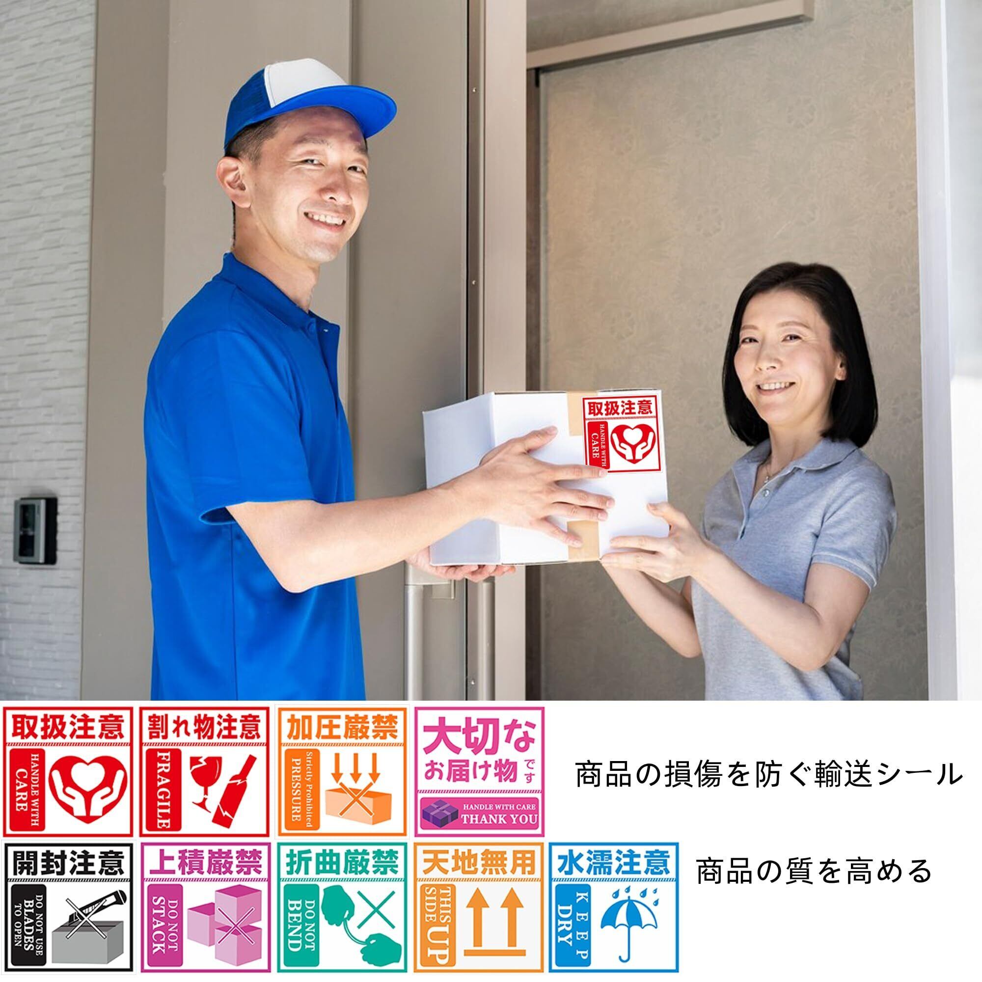 貼付可能場所:ダンボール箱、カートプラスチック、金属、ガラス、タイル、木材(凹凸なし)、輸送途中の商品も使用可能。
