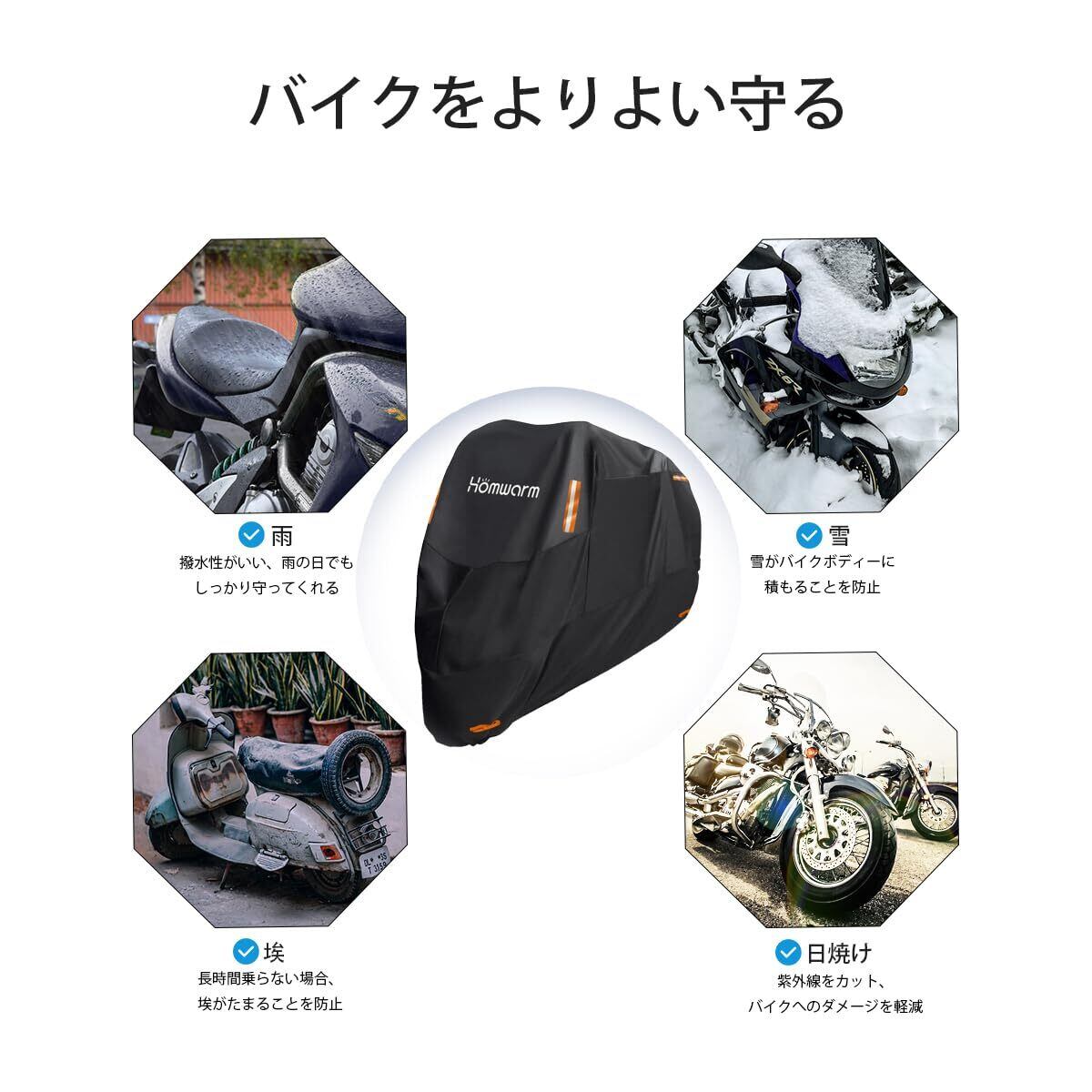 【2022最新】Homwarm バイクカバー300D厚手 防水 紫外線防止 収納バッグ付き (ブラック, XL)