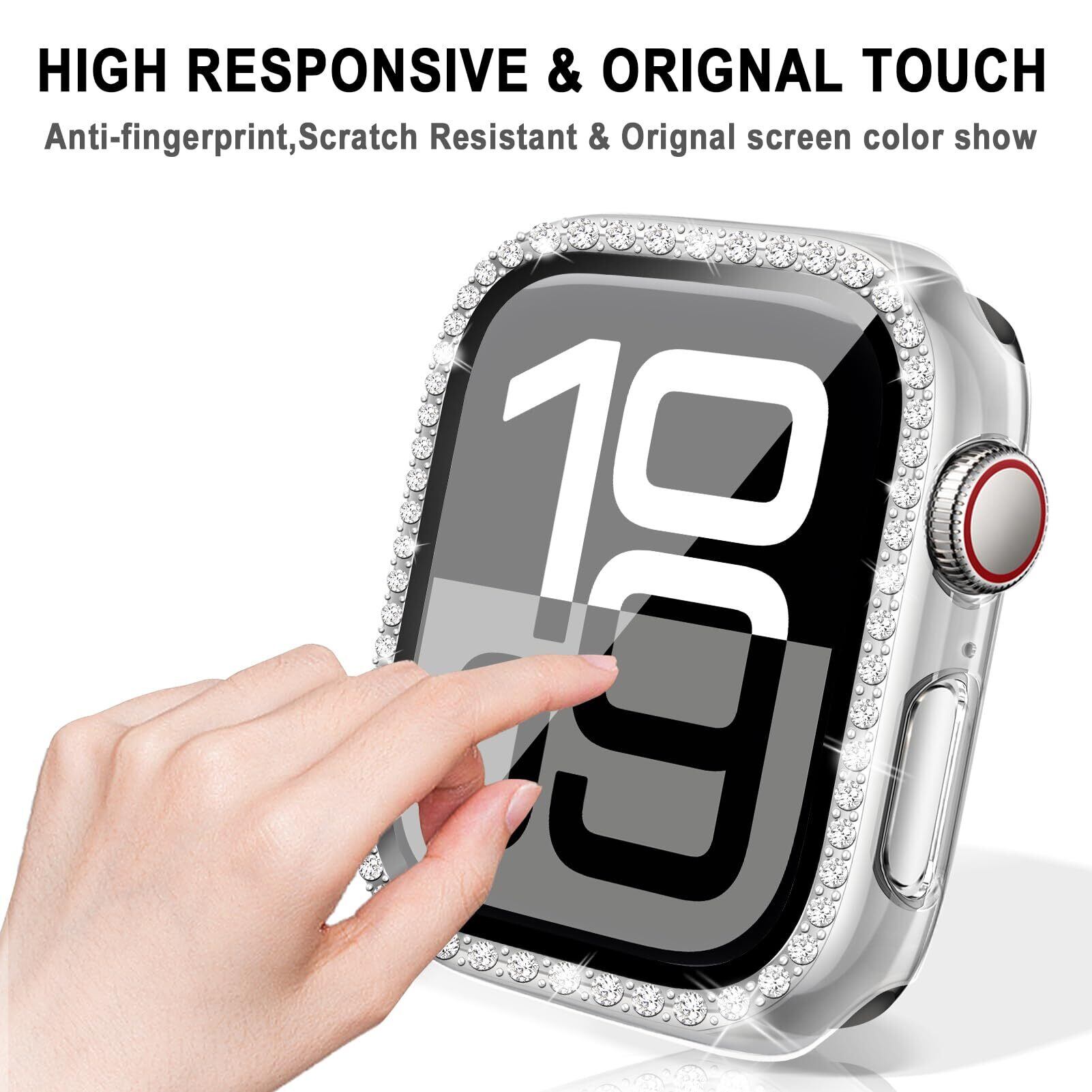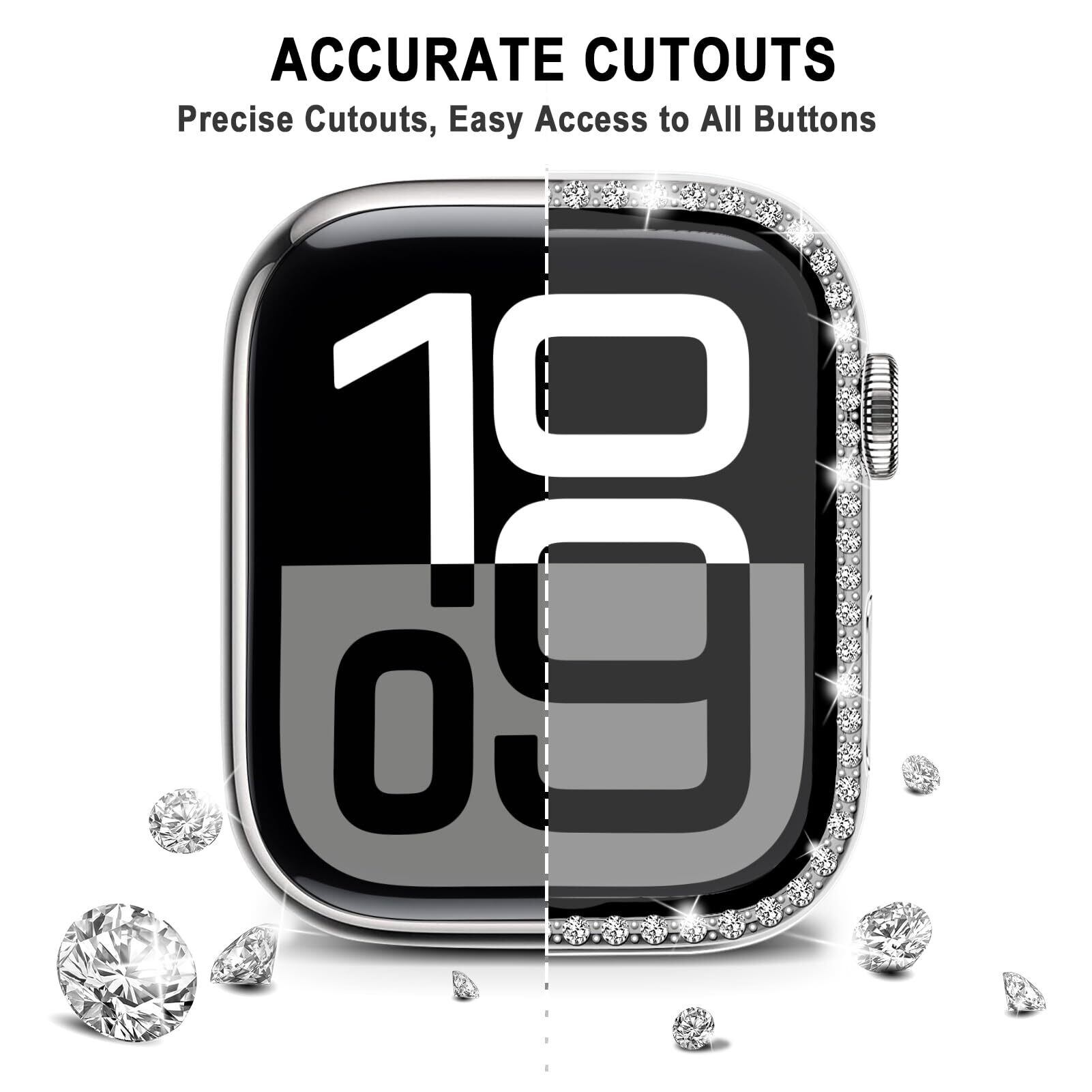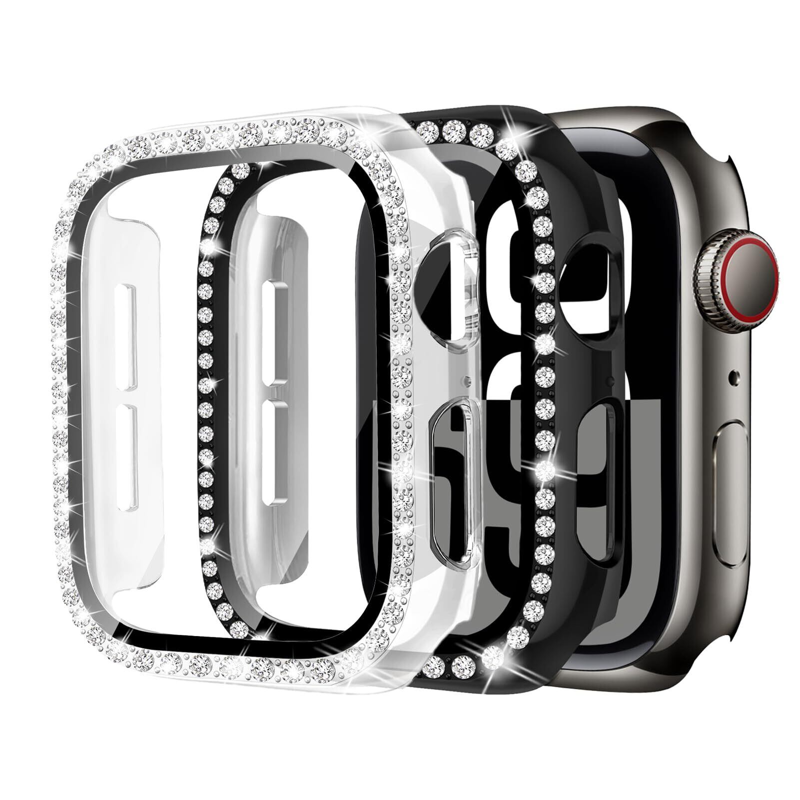 【人気商品】【2色セット】コンパチブル アップルウォッチ カバー 42mm 46mm 41mm 40mm 44mm 45mm レディース、コンパチブル apple watch ケース 10 9 8 7 5 6 4 se、キラキラ 可愛い 耐衝撃 保護ケース フィルム付き PC 女性 装着簡単、40mm ブラック/透明