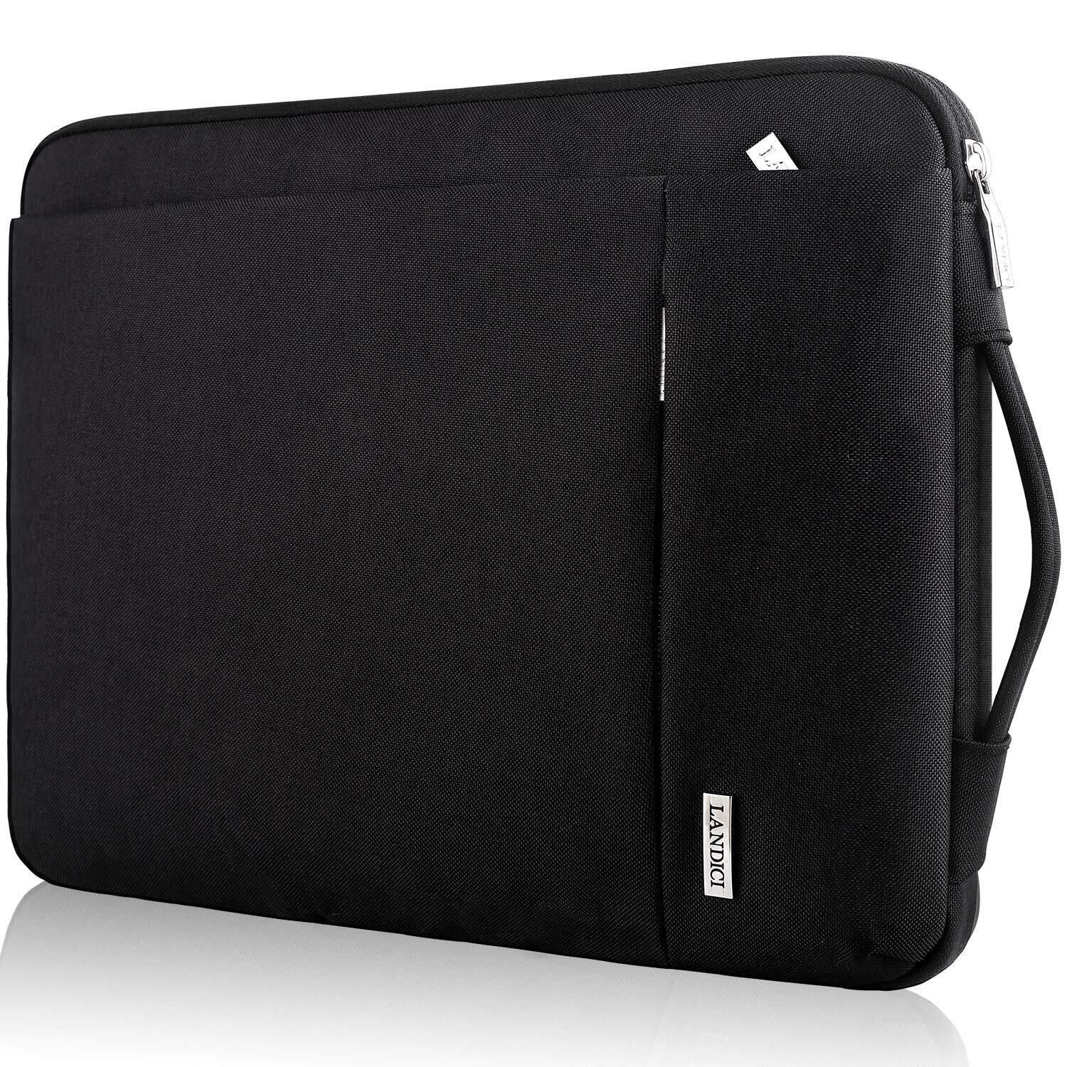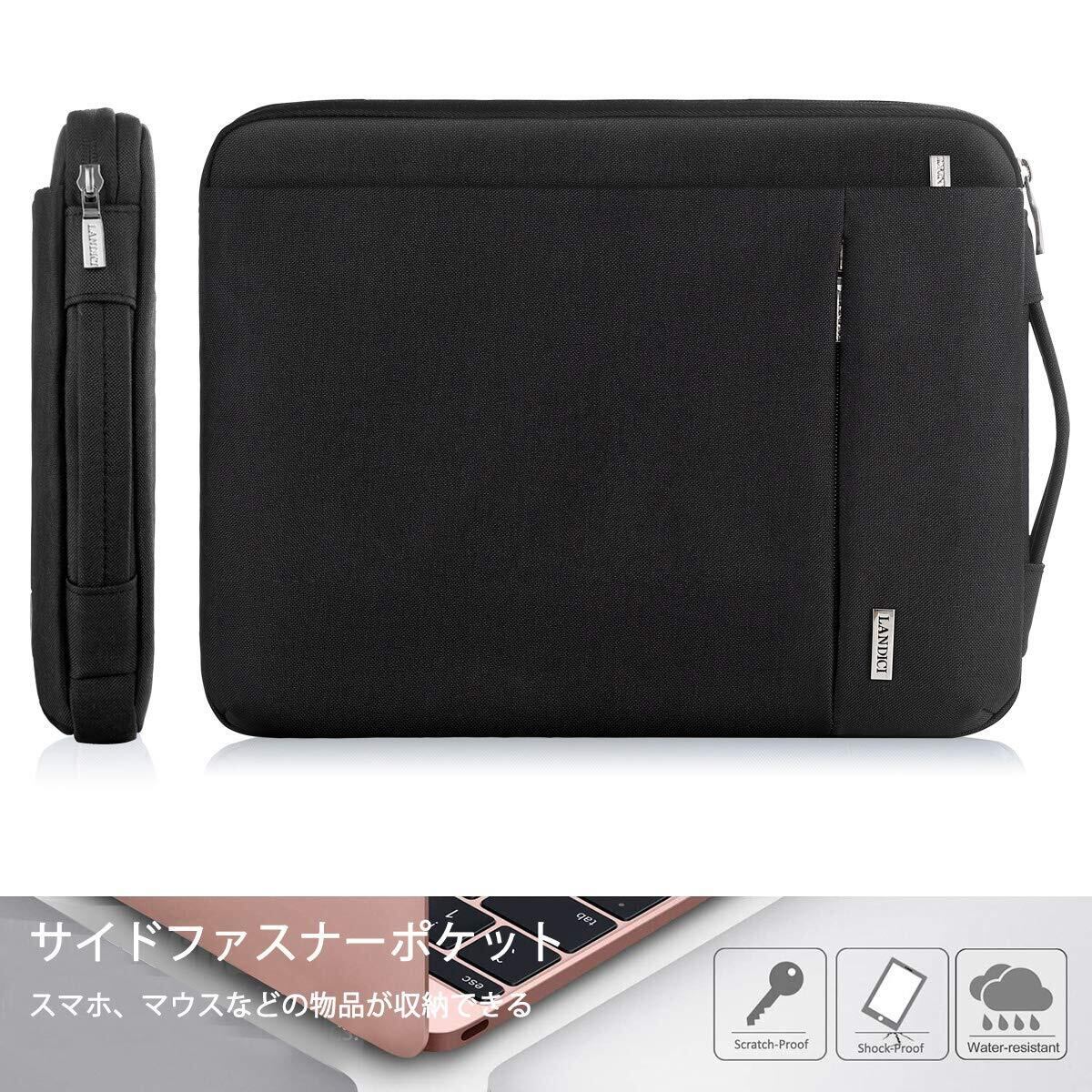 LANDICI 360°保護 パソコンケース 15.6 16インチ pcケース 衝撃吸収 防水 ノートパソコン ケース MacBook Pro M4/M3/M2/M1 Pro/Max 2025-2019、東芝、富士通、Dell、ASUS、Lenovo、HP、Acer、Chromebookに対応 薄型軽量 ノートpcケース 15.6-16.2型pcバッグ 手提付きパソコンカバー,ブラック
