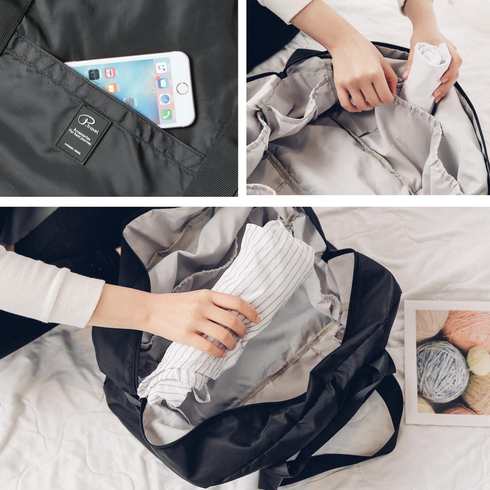 【3WAYバッグ】】長い/短いの持ち手付き、肩掛け、手持ち、キャリーオンバッグの3WAYで使用できます。強化縫製と頑丈なベルトで、重い荷物も安心して持ち運べます
