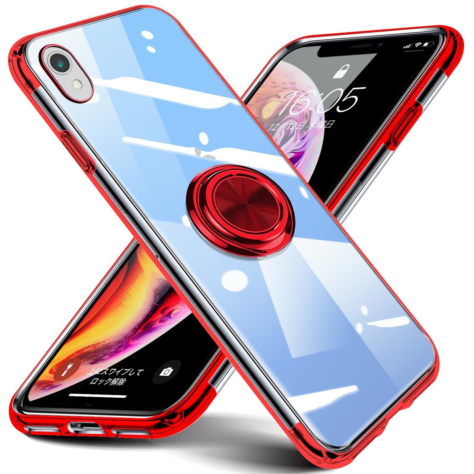 【在庫処分】Galaxy A23 5G ケース リング付き SCG18 SC-56C クリア 透明 柔軟 TPU 耐衝撃 車載ホルダー対応 米軍MIL規格 ストラップホール付き 薄型 軽量 擦り傷防止 耐久 スリム ギャラクシー A23 5G ケース(赤)R63-YXZH-A23-HON