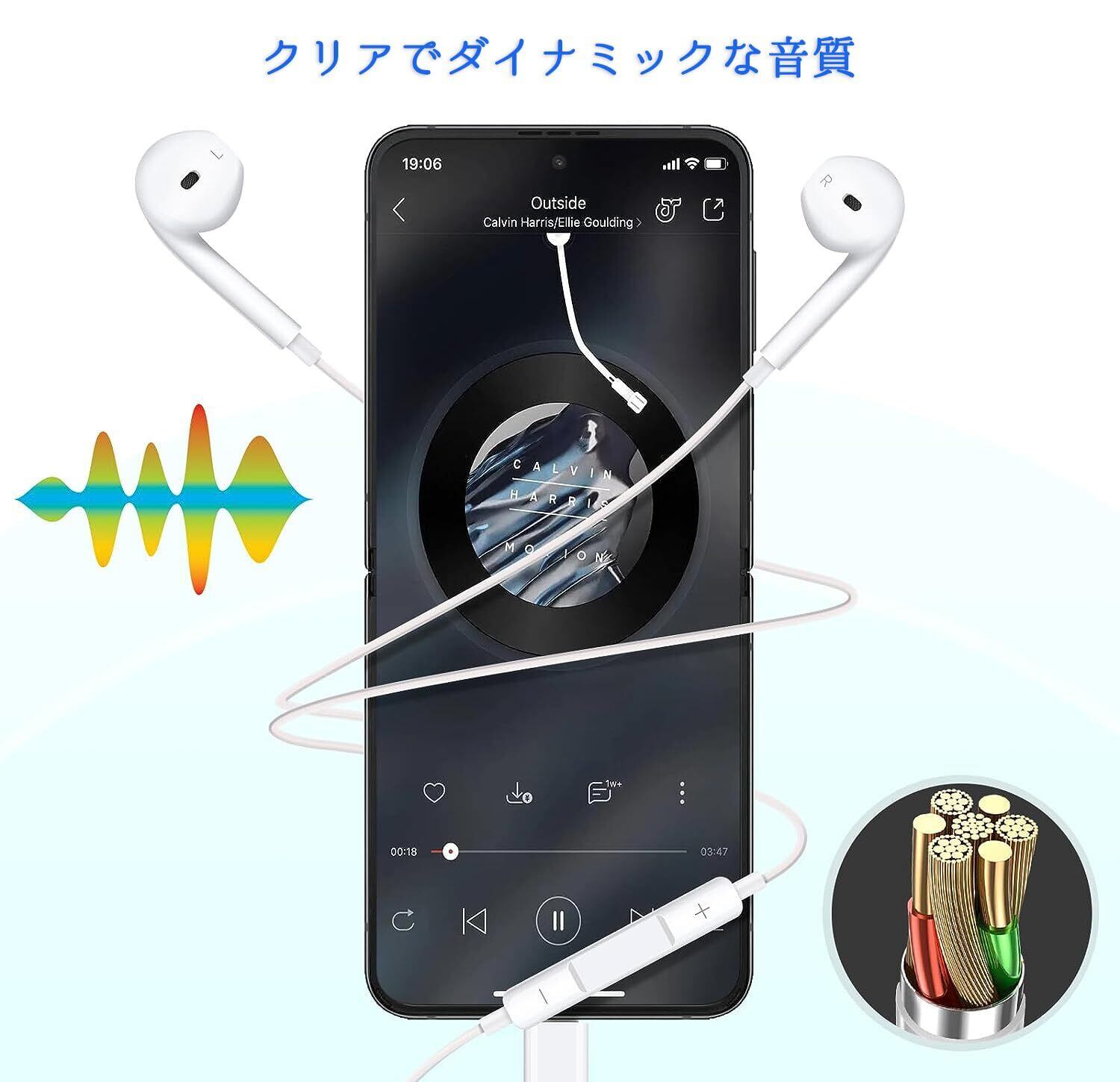 Type-C 有線イヤホン コネクタを搭載したホワイトのイヤホンは、iPhone、iPad、Xperia、Galaxy、Androidなどのデバイスに対応しています。使いやすさと快適な装着感を追求したデザインは、毎日の通勤、トレーニング、音楽や通話がスムーズにできないあらゆるアクティビティに最適です。洗練されたデザインと高音質を兼ね備えたこのイヤホンは、ハイテク愛好家にとって欠かせないアクセサリーです。音量調節機能とノイズキャンセリング機能も搭載し、音楽やポッドキャストを存分にお楽しみいただけます