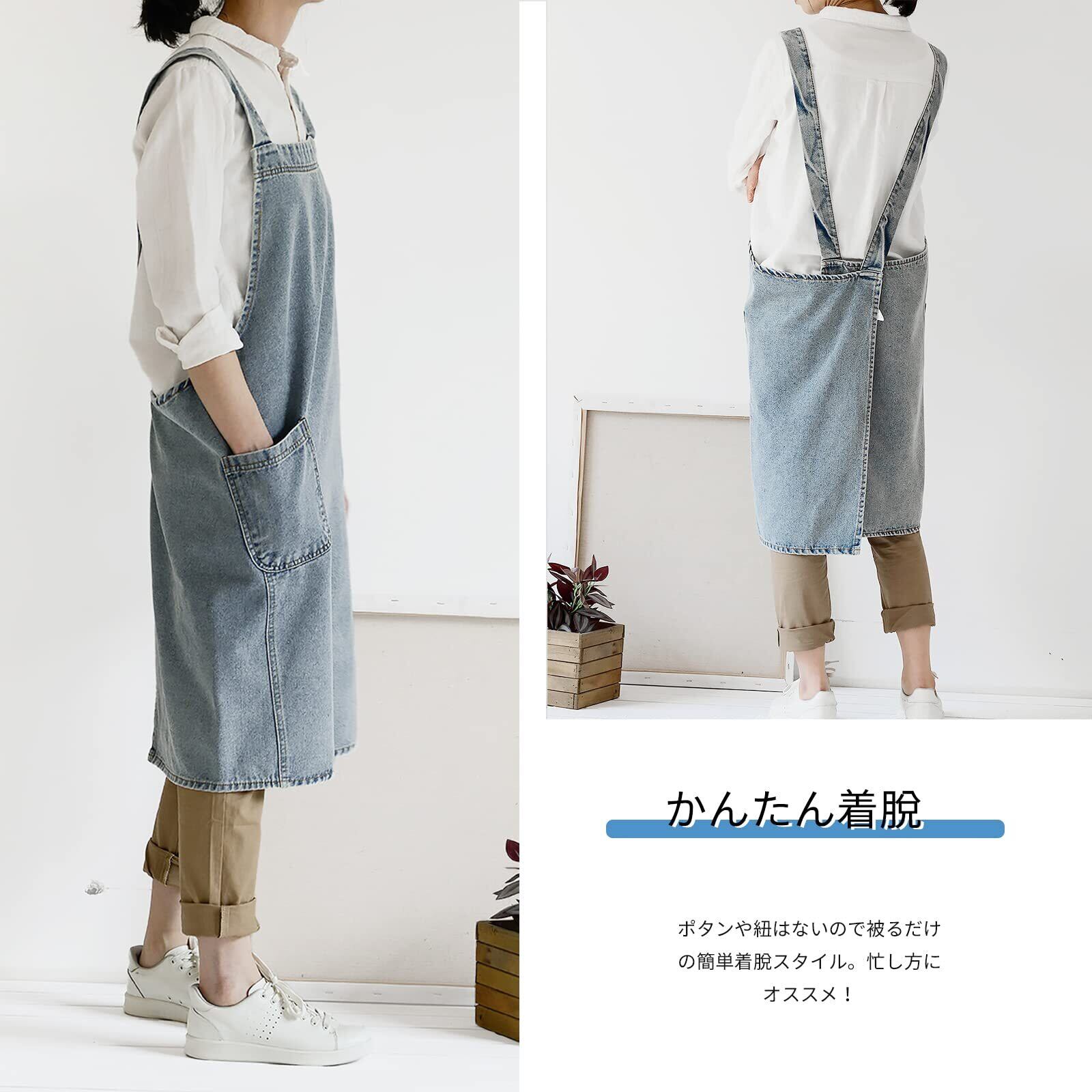 [JIAHU] エプロン レディース おしゃれ かわいい ストライプ かぶるだけの簡単着脱 体型カバー 北欧 ポケット2 撥水 はっすい レストラン 料理 キッチン ワークエプロン シワにならない 母の日 プレゼント