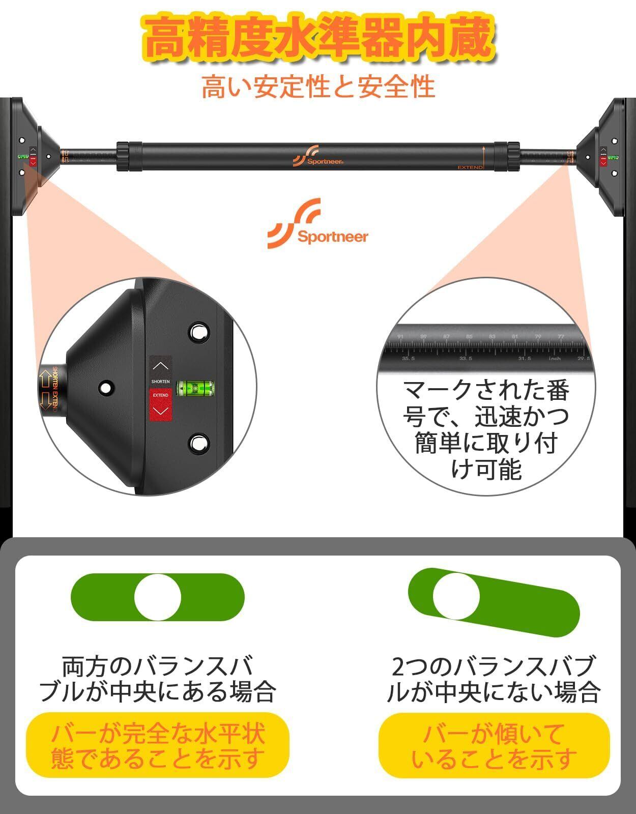 Sportneer 懸垂バー 懸垂マシン ぶら下がり健康器 簡単設置 筋トレ 背筋 トレーニング 懸垂器具 チンニングスタンド 懸垂機 懸垂台 Pull Up Bar 滑り止め 胸筋 腹筋 二頭筋 穴あけ不要 ネジ不要 自宅用 ホームジム 男性 プレゼント