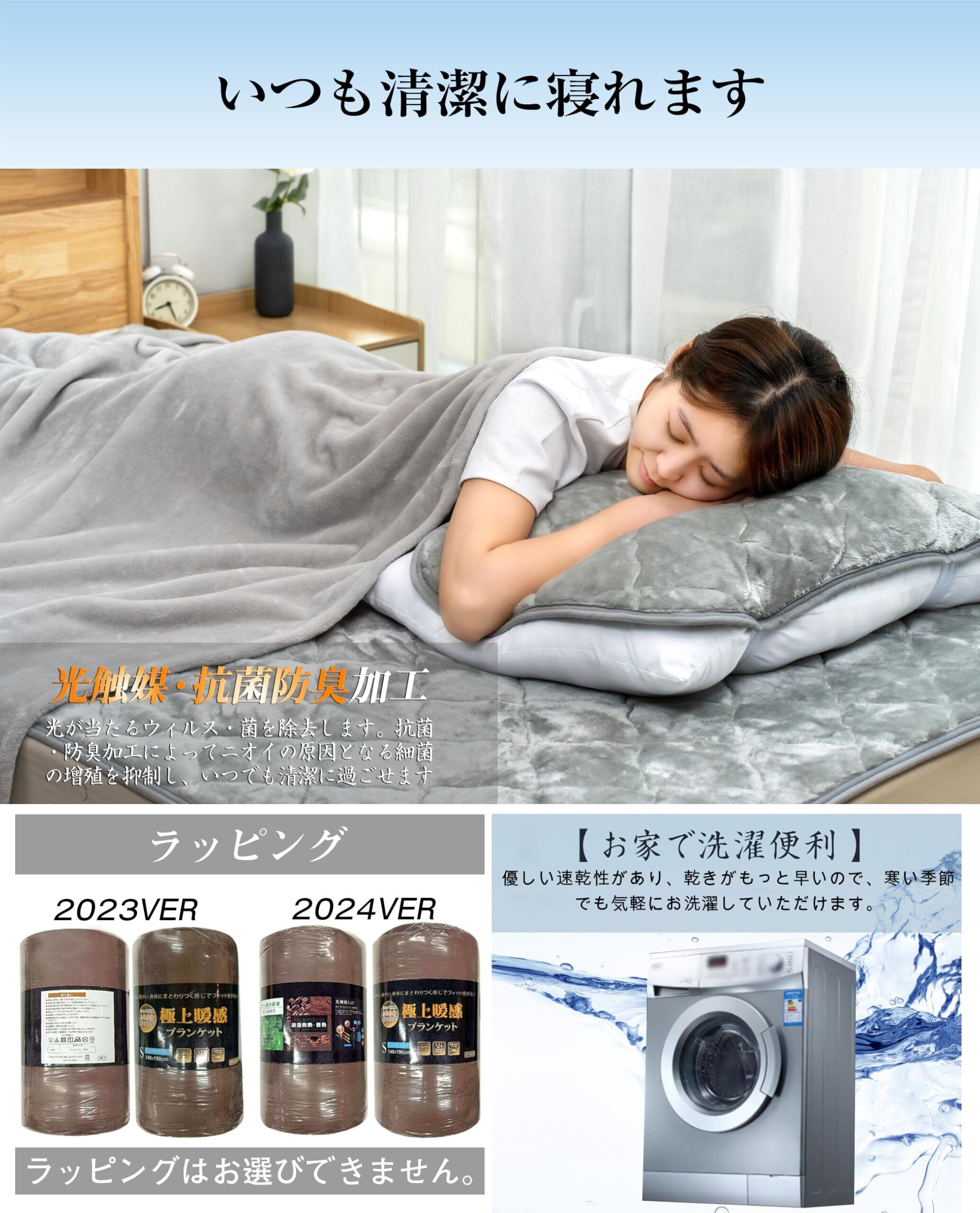 〔光触媒抗菌防臭加工・丸洗OK〕光触媒抗菌防臭加工効果で、ニオイの原因となる細菌の繁殖を抑制します。清潔で安全な毛布になります。さらにご自宅で簡単に洗えるので、汚れても安心です。もちもち感も損なうことなく心地良くお使いいただけます。