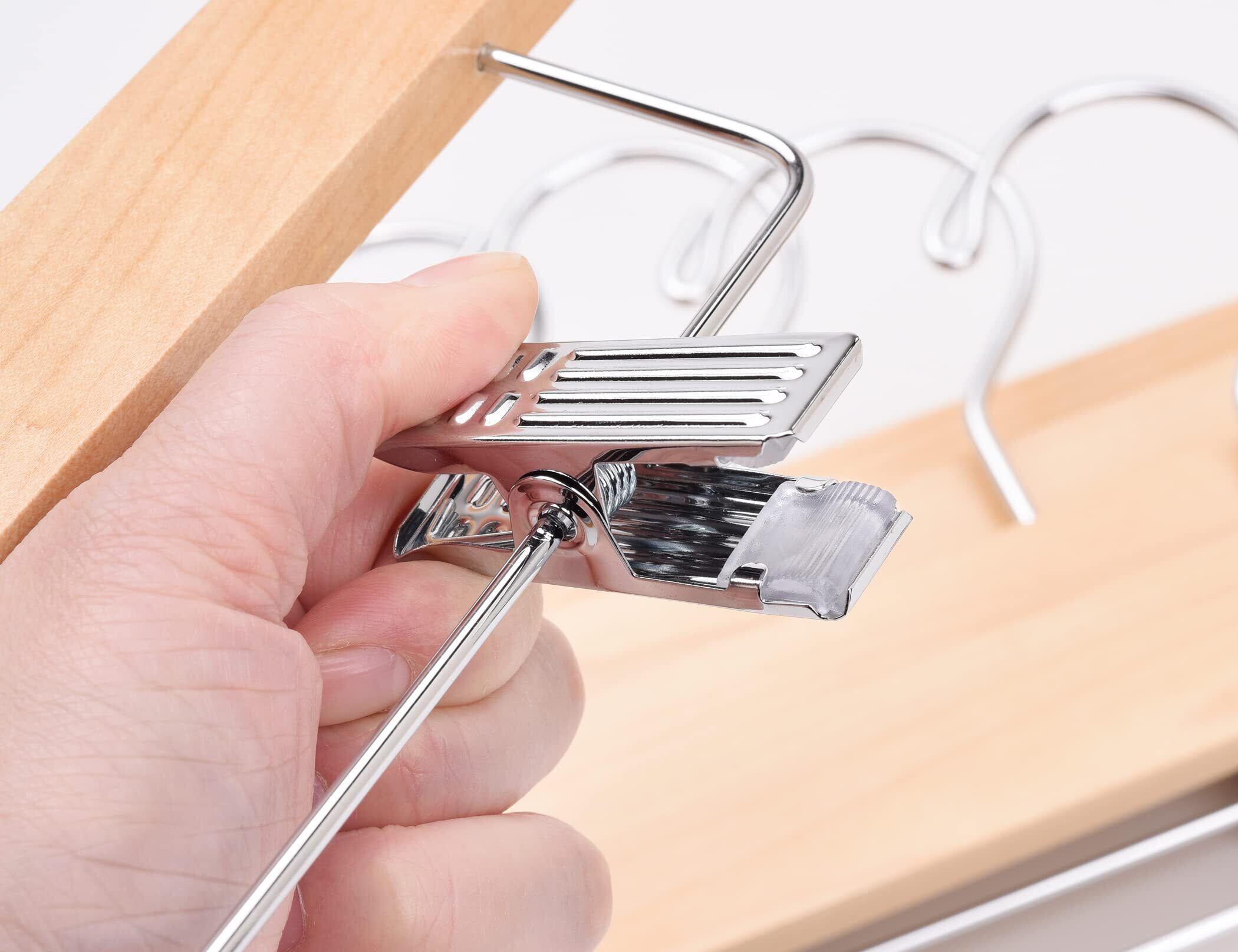 Amber Home 木製ズボンハンガー スカートハンガー 10本組 パンツハンガー ボトムス スラックス 型崩れ防止 滑り止め 調節可能 強力クリップ シワ防止 回転フック 防錆 クローゼット収納整理 省スペース ナチュラル