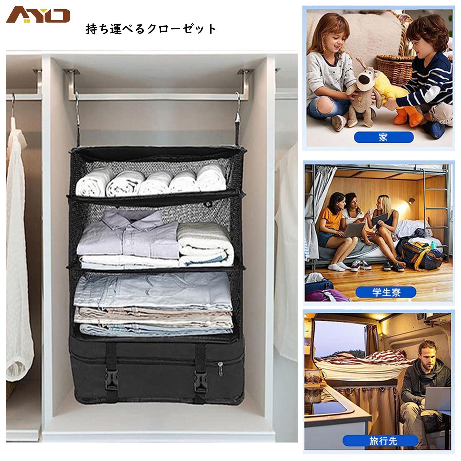 AYO クローゼット 吊り下げ収納 収納ボックス 衣類ラック インナーバッグ 吊り下げラック クローゼット内収納 トラベルポーチ 折り畳み式 洋服収納 衣装ケース ハンガー収納 旅行ポーチ バッグ 省スペース 収納 旅行 出張 携帯用 取付簡単 大容量