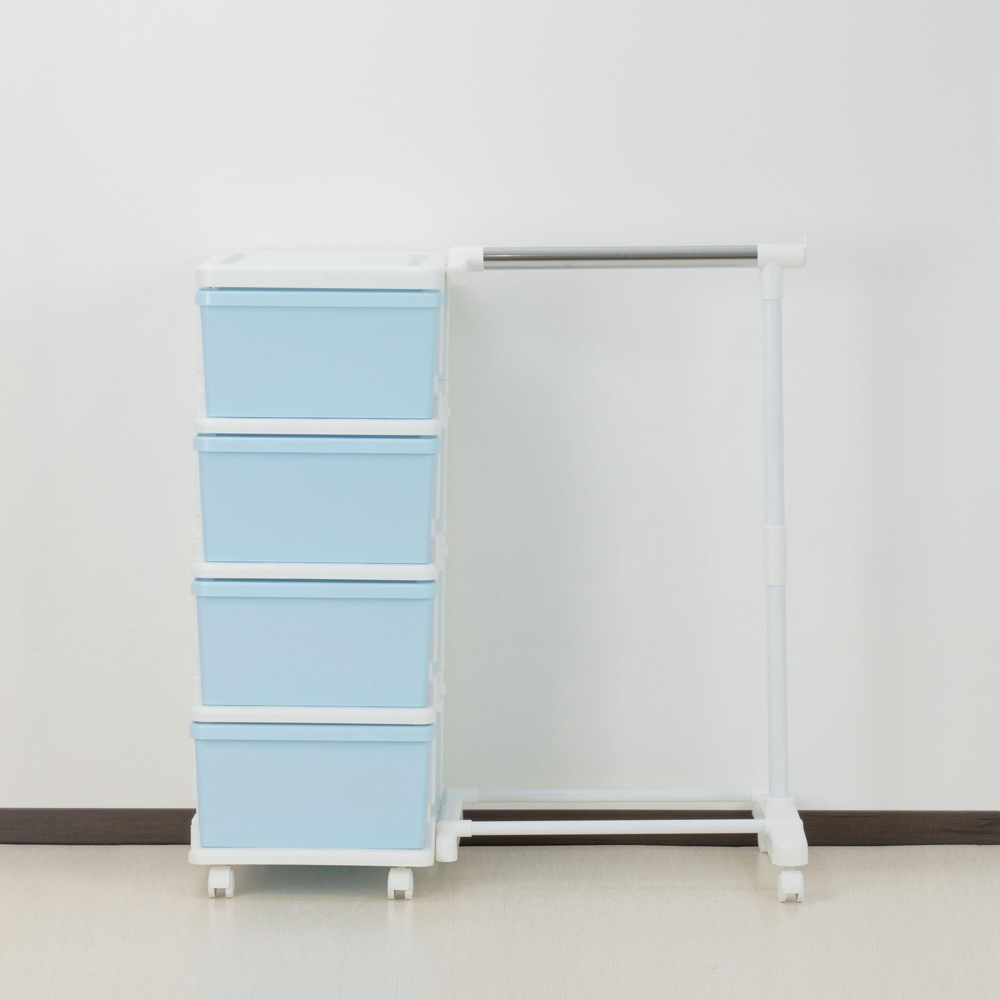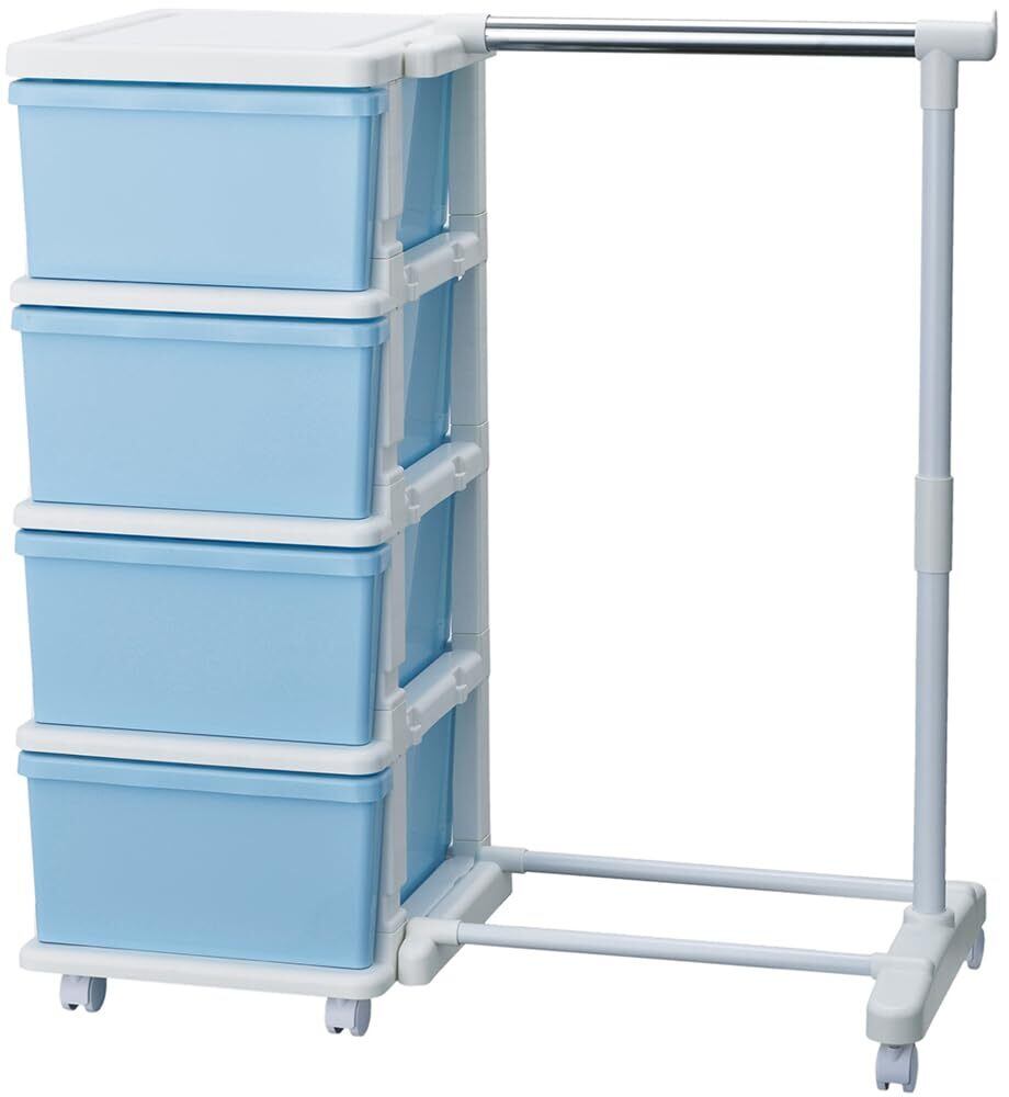 JEJアステージ(JEJ Astage) 収納チェスト SEEDS(シーズ) ハンガーラック & 4段チェスト ブルー 日本製 簡単組立 幅83.5×奥行42×高さ91.2cm