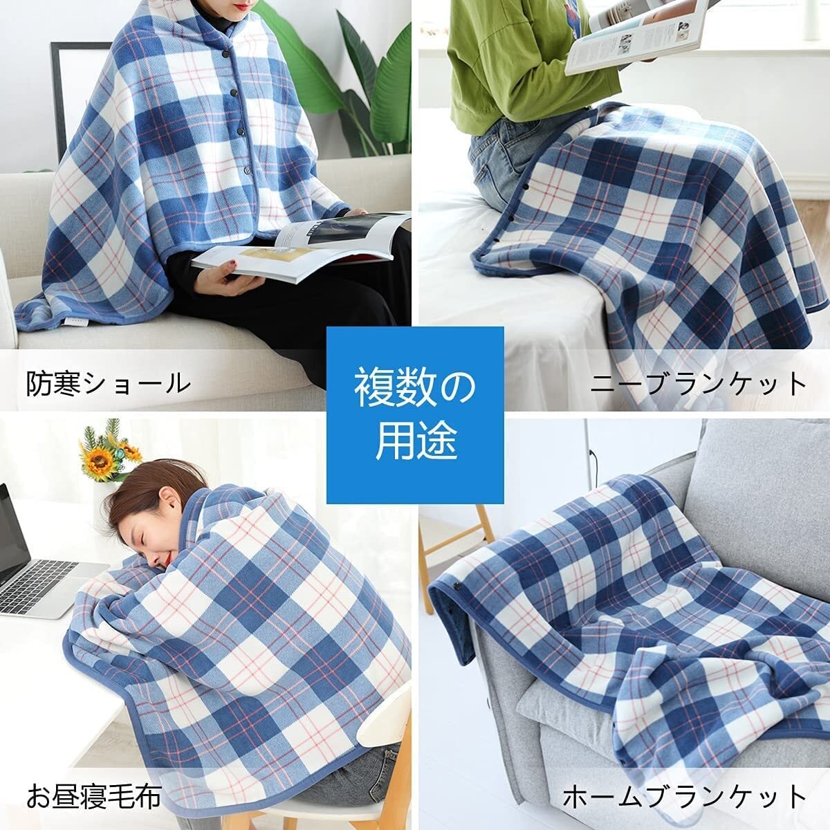 ひざ掛け ブランケット 膝掛け 着る毛布 大判 80X130cm 厚手 軽量 昼寝用 吸湿発熱 静電気防止 防寒対策 オフィス アウトドア 出張 キャンプ 夏冬兼用 (blue)