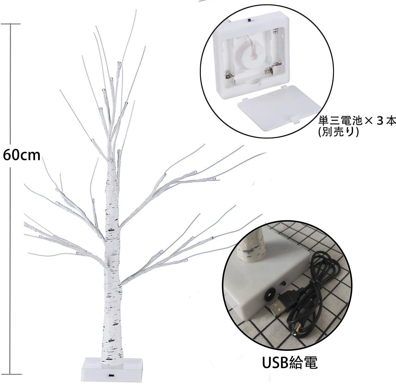 ブランチツリー LED 白樺ブランチツリーライ 白樺ツリー 電池式 クリスマスツリー ライト クリスマス 正月飾り 誕生日/記念日/結婚式/クリスマス/パーティー/バレンタイン 雰囲気ランプ 屋内装飾用 観葉植物 ストリングライト(高さ60cm)