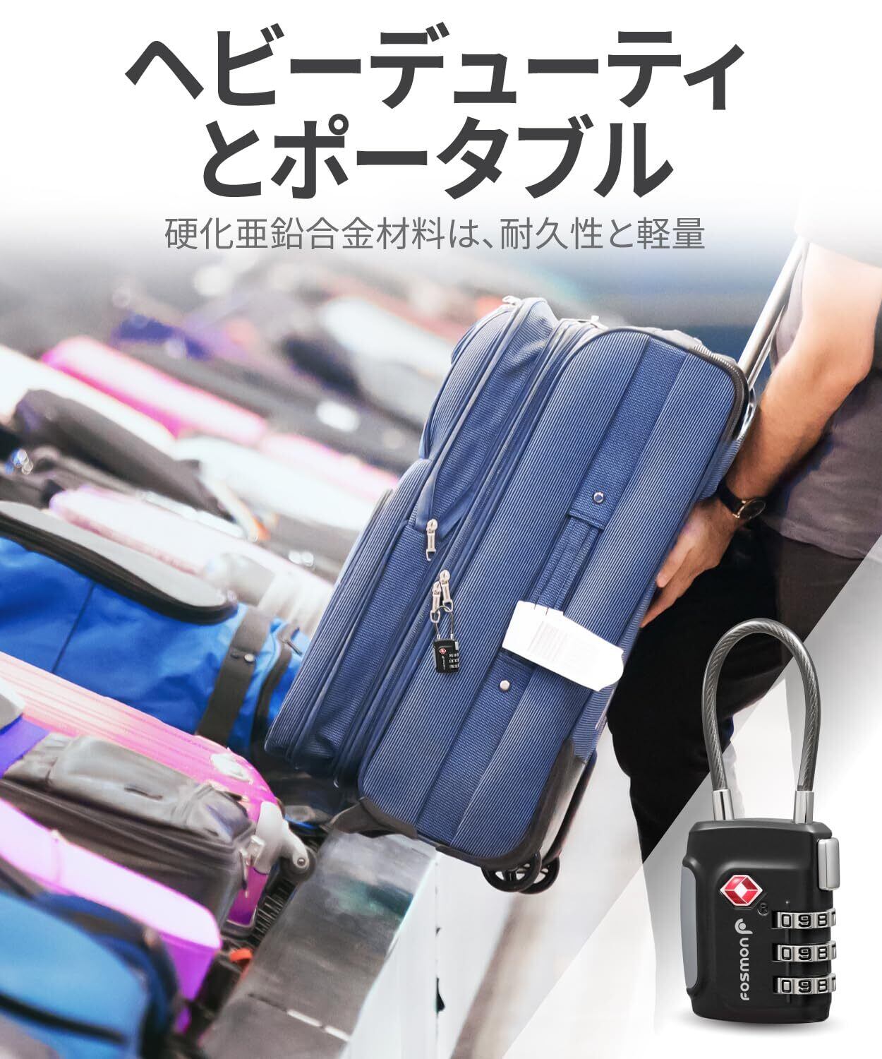 [TSA 受け入れ荷物ロック]Fosmon TSA ロックを使用すると、ロックを損傷することなく荷物をチェックできます。TSA エージェントは、検査後に荷物を開いて再ロックし、安心を提供します。