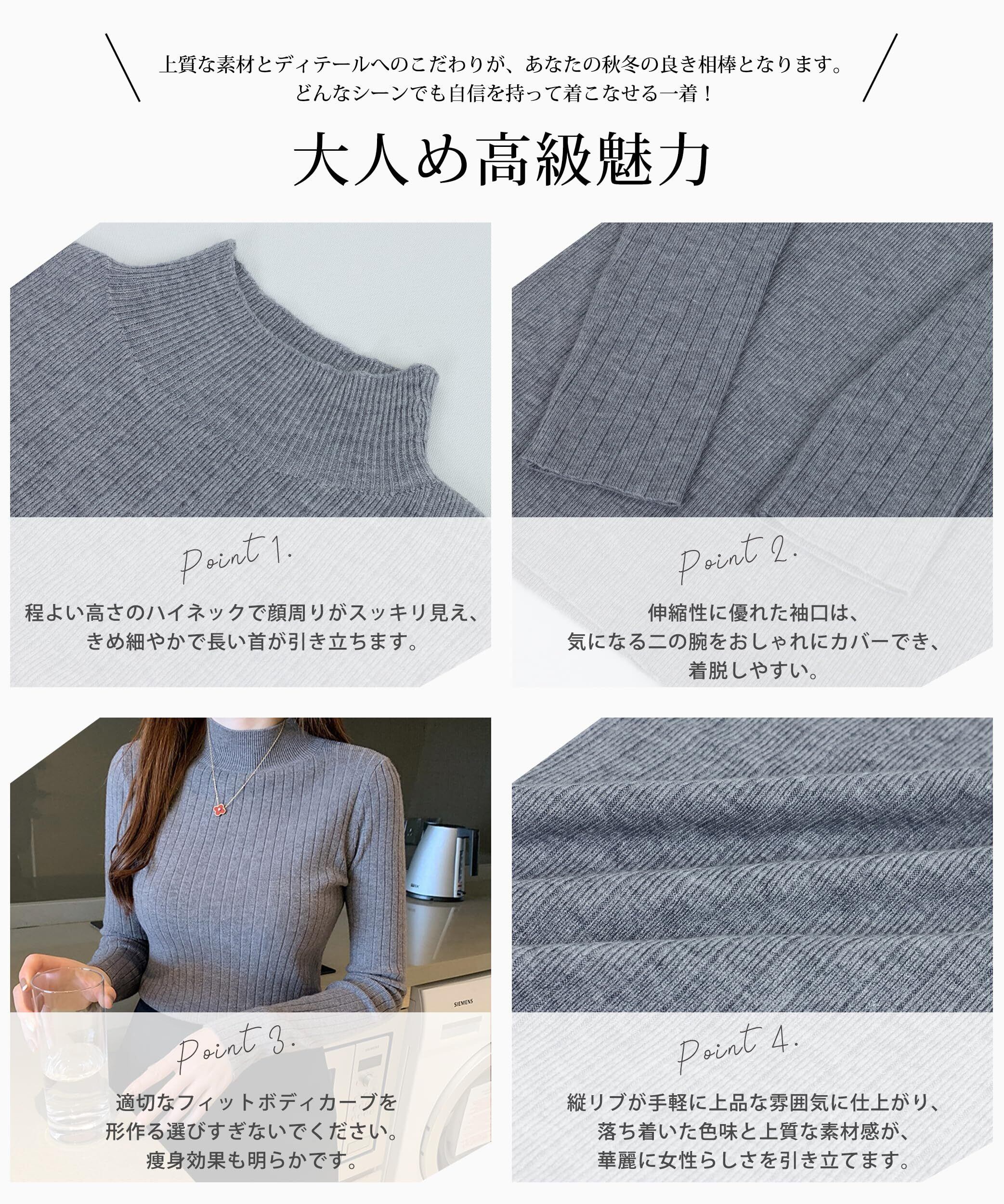 [PALAME] リブニット セーター レディース 秋冬 【3サイズ展開・大人め高級魅力・贅沢な質感・細見えるシルエット】 ハイネック 重ね着 ニット トップス ニットソー カットソー 縦リブ 着痩せ 小顔 薄手 柔らかい 高伸縮 シンプル 長袖 春 秋 冬