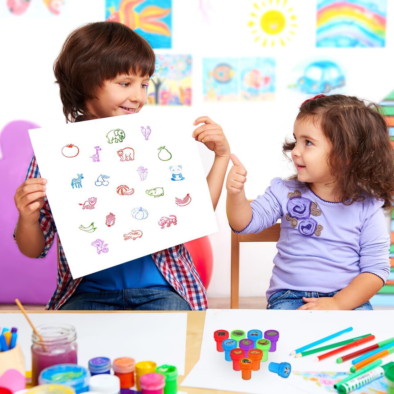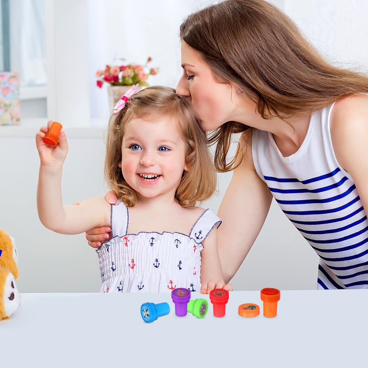 【20個セットのミニスタンプセット】可愛い動物や果物のデザインが多数揃っています。 子供たちが様々なスタンプを楽しんだり、手帳やスケジュール帳の装飾に使ったりするのに十分な量です。