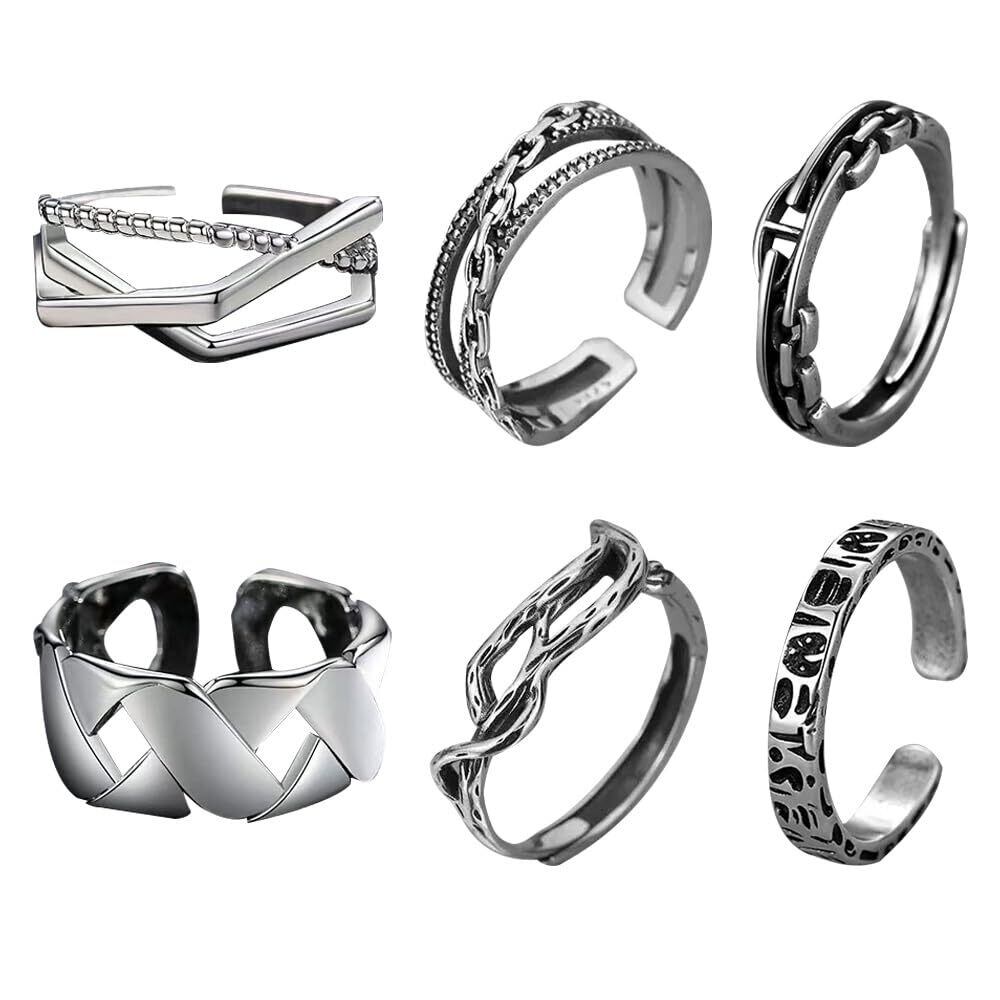 [SYSPDM] ファッションリング 指輪 6点セット レディース メンズ リング アクセサリー おしゃれ シンプル シルバー 調節可能 プレゼント ユニセックス 人気 メンズ レディース セット