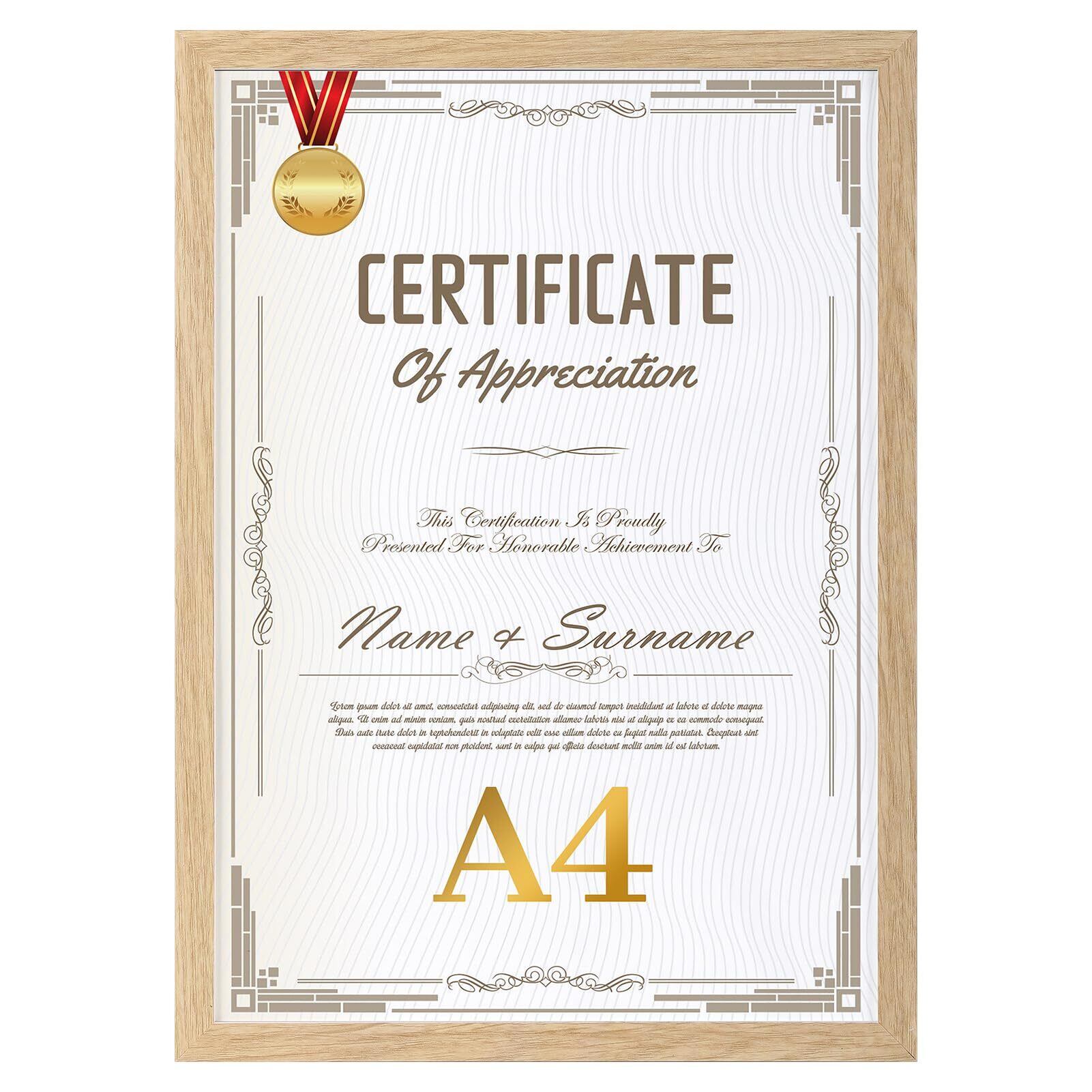 A4 賞状 額縁 壁掛け 卓上兼用 フレーム 210x297mm 写真 額 ナチュラル 1枚