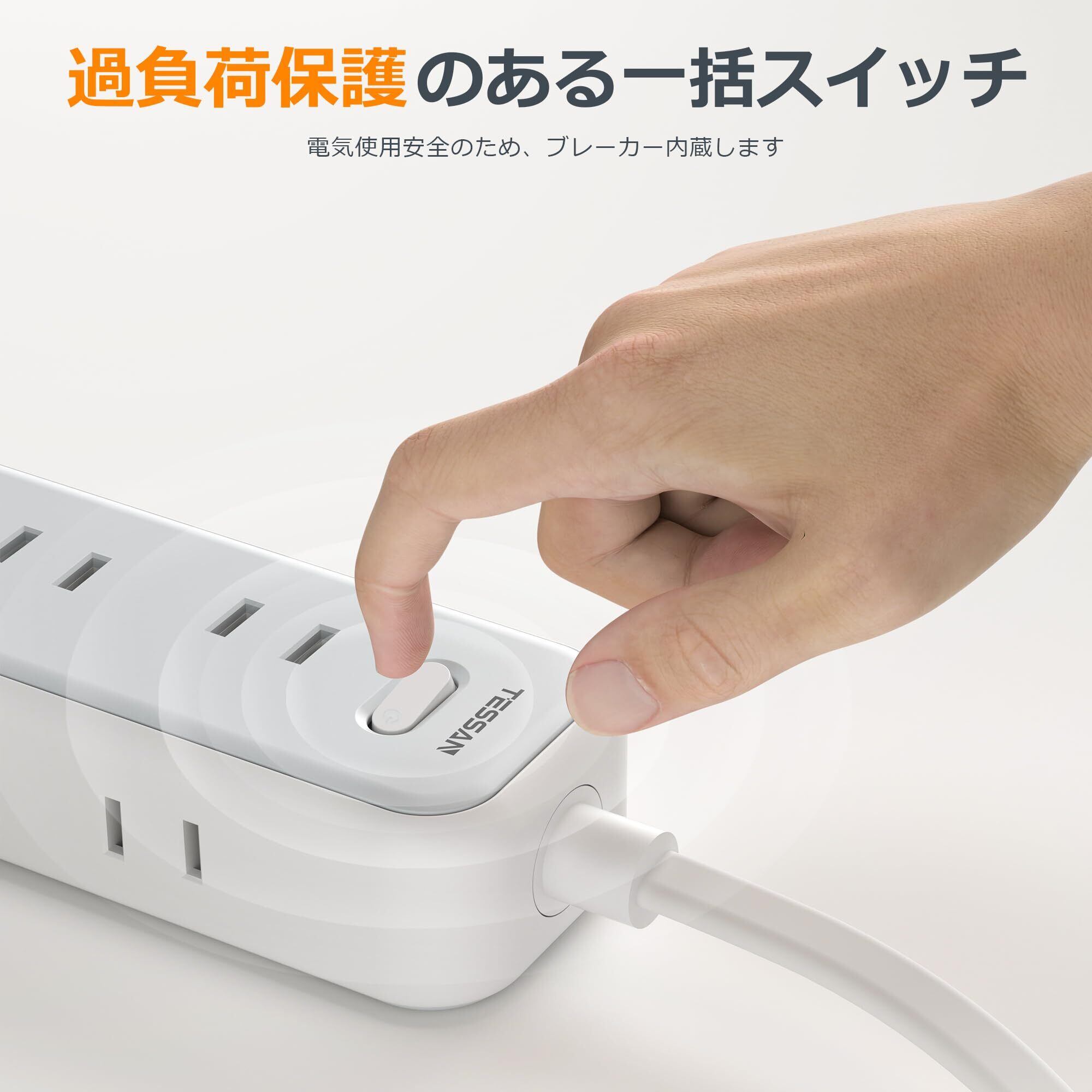 延長コード 50cm 短い 電源タップ 薄型プラグ 隙間 usb たこあしコンセント テーブルタップ TESSAN 9個AC口 2個type-Aポート 1個USB-Cポート電源コード OA タコ足配線 マルチ 一括スイッチ付き 壁掛け 卓上