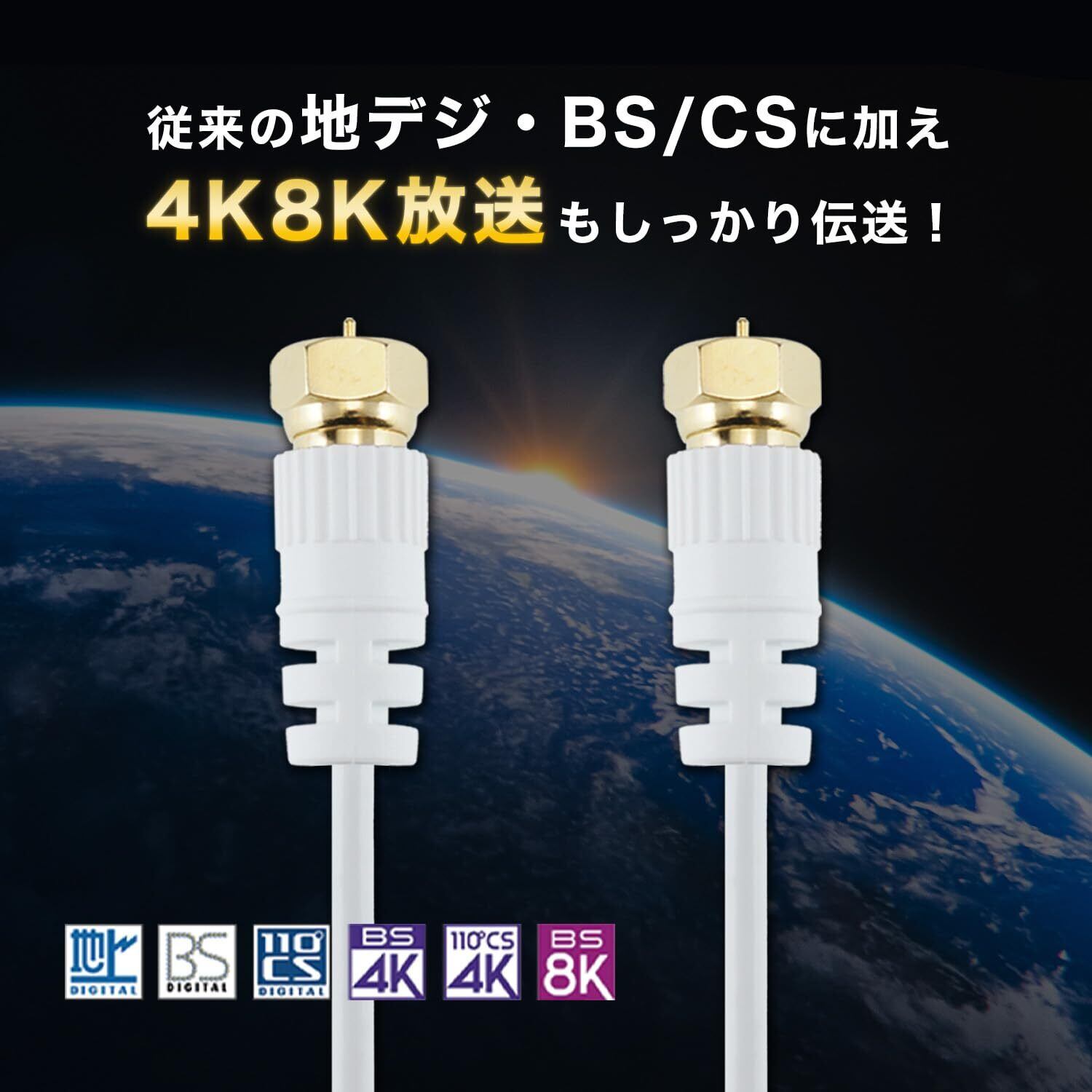 [4K8K衛星放送対応] [ケーブルは細く柔軟で配線が簡単] [2重シールドで信号干渉を低減] [金メッキコネクタで耐久性向上]
