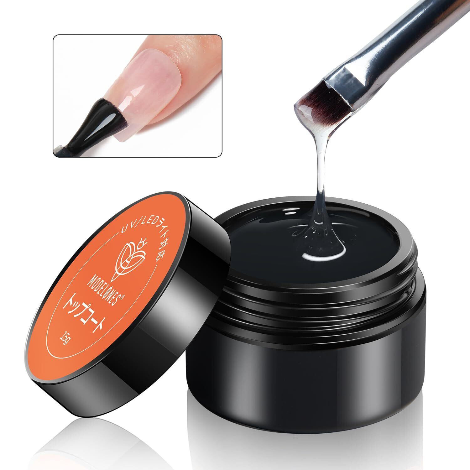 Modelones ジェルネイル トップコート ベースコート 15gクリア ネイル ノンワイプトップ 拭き取り不要 ジェル オールインワンジェル 光沢 セルフネイル 大容量(クリア-ノンワイプトップジェル)