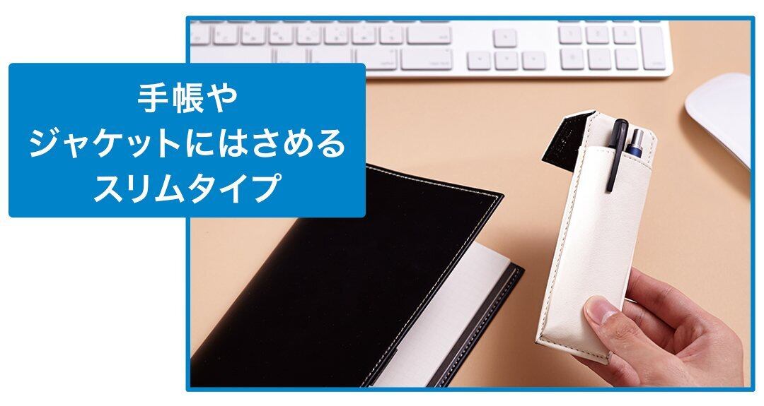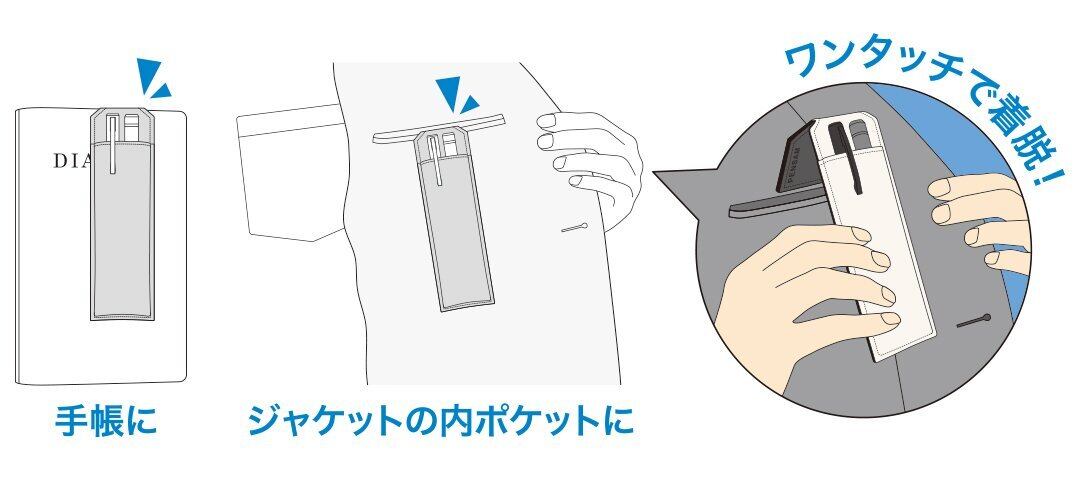 手帳やジャケットにはさめるスリムタイプ。