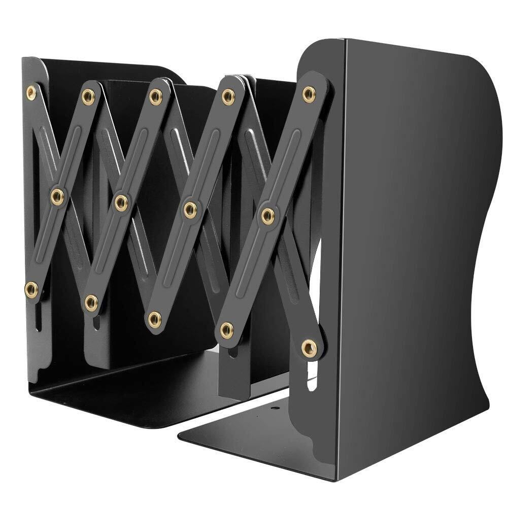 ブックスタンド 伸縮自在 オフィス 本立て 卓上収納 本/雑誌/書類入り ブックエンド 倒れない 仕切りスタンド 金属製 おしゃれ 整理用品 (ブラック)