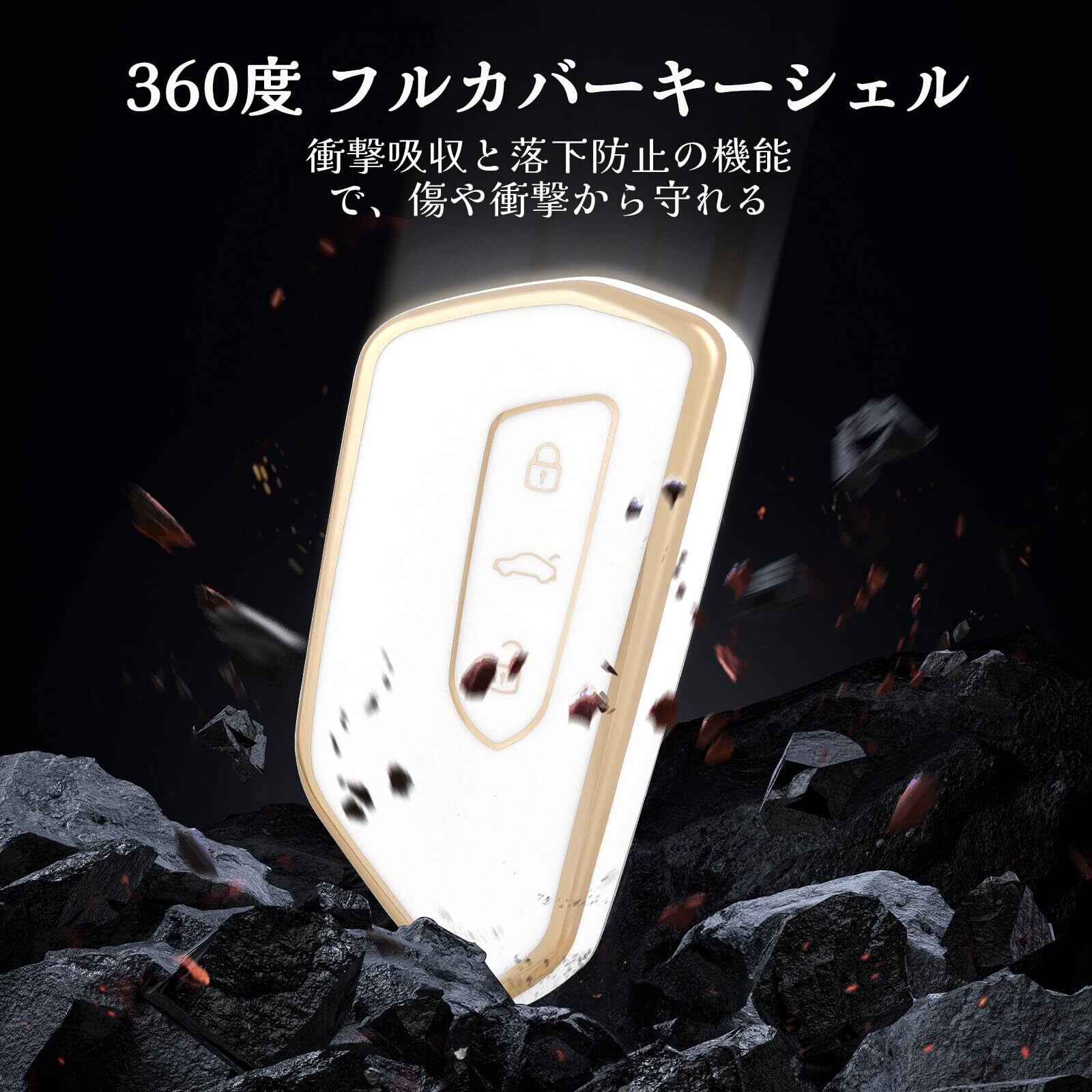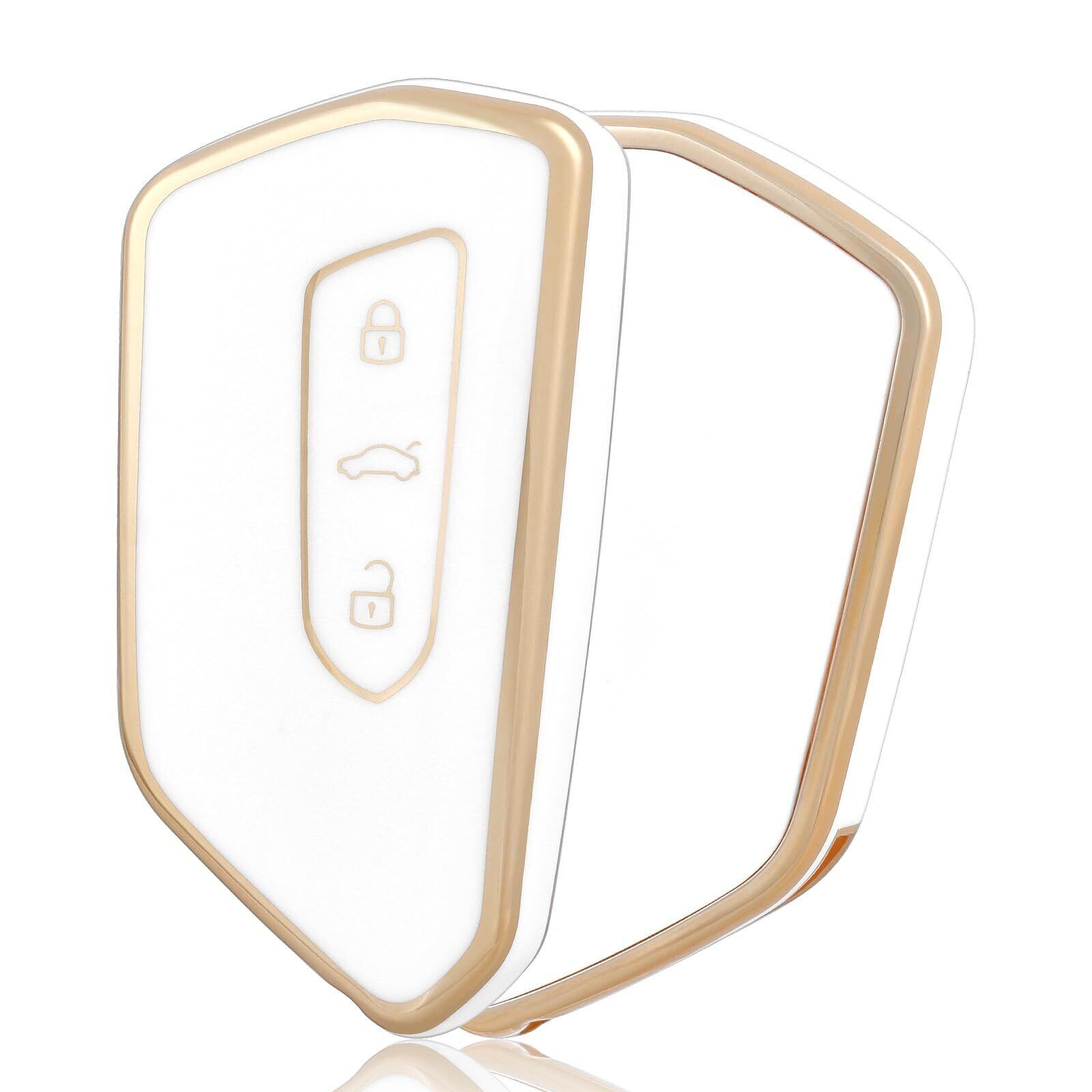 【新着商品】キーケース TPU 車のキーカバー キーシェル 互換 新型VW Golf 8 GTE GTI アテカ タラコ エンヤックiV 60 キュプラ フォルメントール リモコンケース 互換スマートキーケース, 3ボタン, ホワイトゴールド