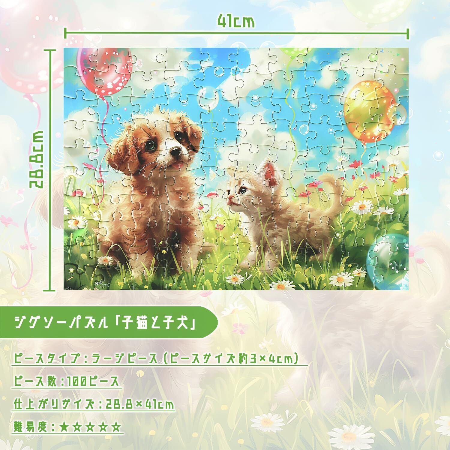 【数量限定】MISITU ジグソーパズル 100ピース ラージピース パズル 風景 絵画 猫 犬 ペット 動物 かわいい プレゼント 贈り物 誕生日 記念日 祝い クリスマス おしゃれ インテリア 子猫と子犬 (28.8 x 41 cm)