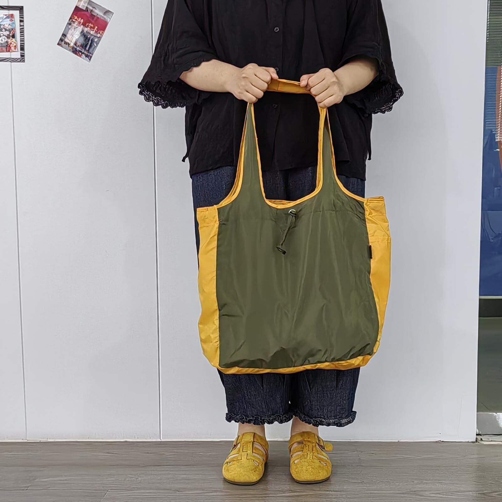 【軽量&折りたたみ式】:エコバッグの重量は116gで、超軽量で普段使いに楽です。使わない時に折りたたんだ状態で服のポケット/バッグに直接入れるコンパクトサイズになり、持ち運びにも便利です。荷物を取り出してからまた折りたたむことができるので、省スペースで収納しやすいです。実用的かつ使い勝手なエコバッグです。