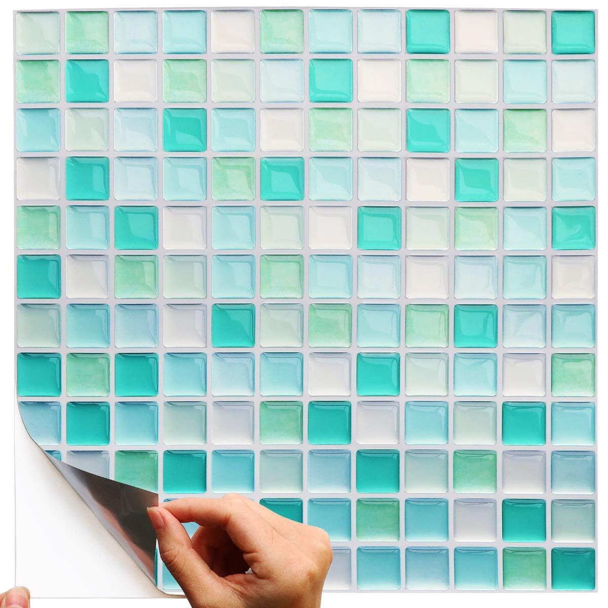 Yoilline タイルシール グリーン 賃貸 ウォールステッカー 耐熱 防水 タイル 3D シール 簡単取付 モザイクタイルシール キッチン 洗面所 トイレ 北欧 DIY ステッカー 壁紙シール 4枚 色16