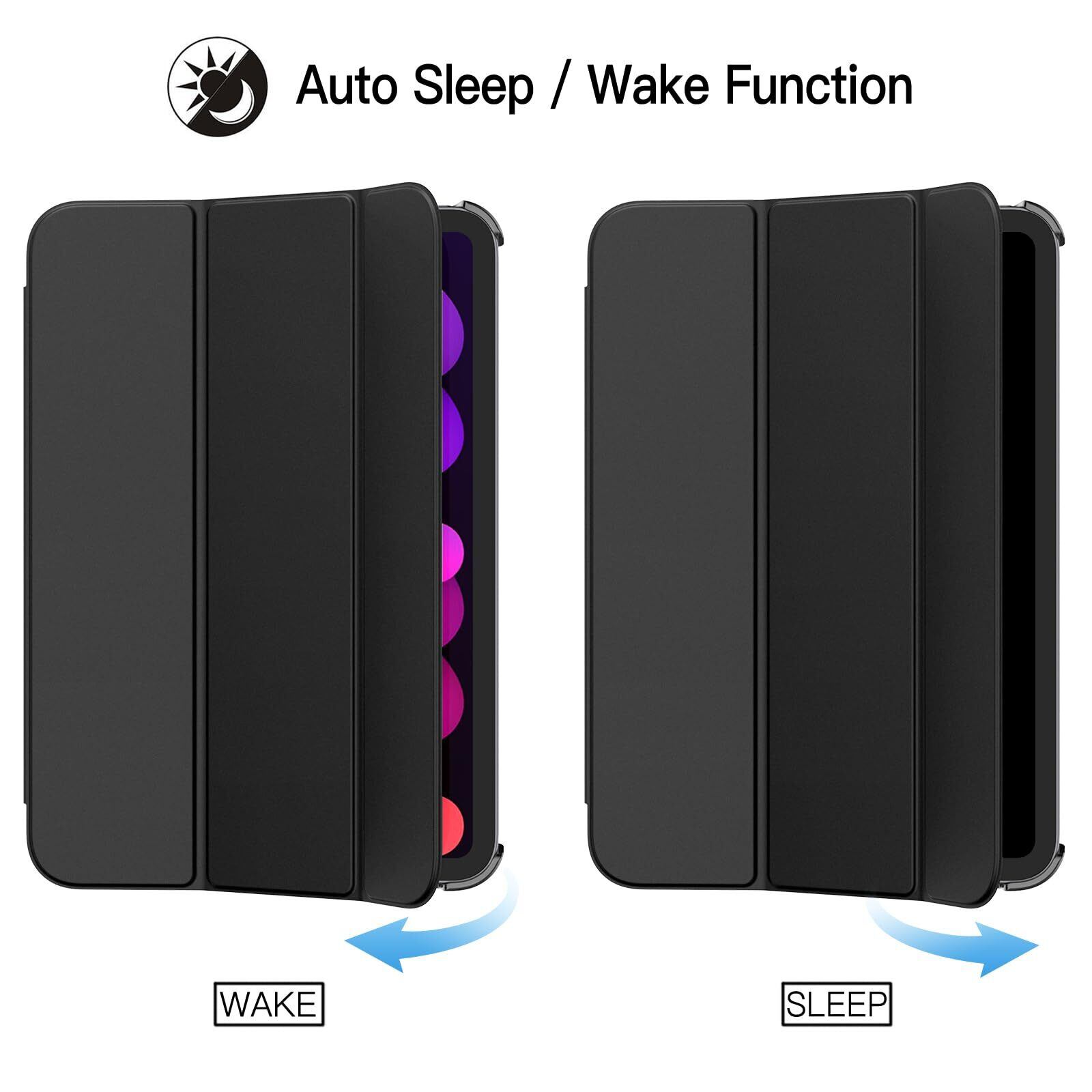 JETech iPad mini (A17 Pro 2024 モデル、第7世代) / mini 6 ケース (8.3インチ、2021モデル、第6世代)用 スリムスタンドハードバック ウェイクアップ/オートスリープ機能付き タブレットカバー (ブラック)