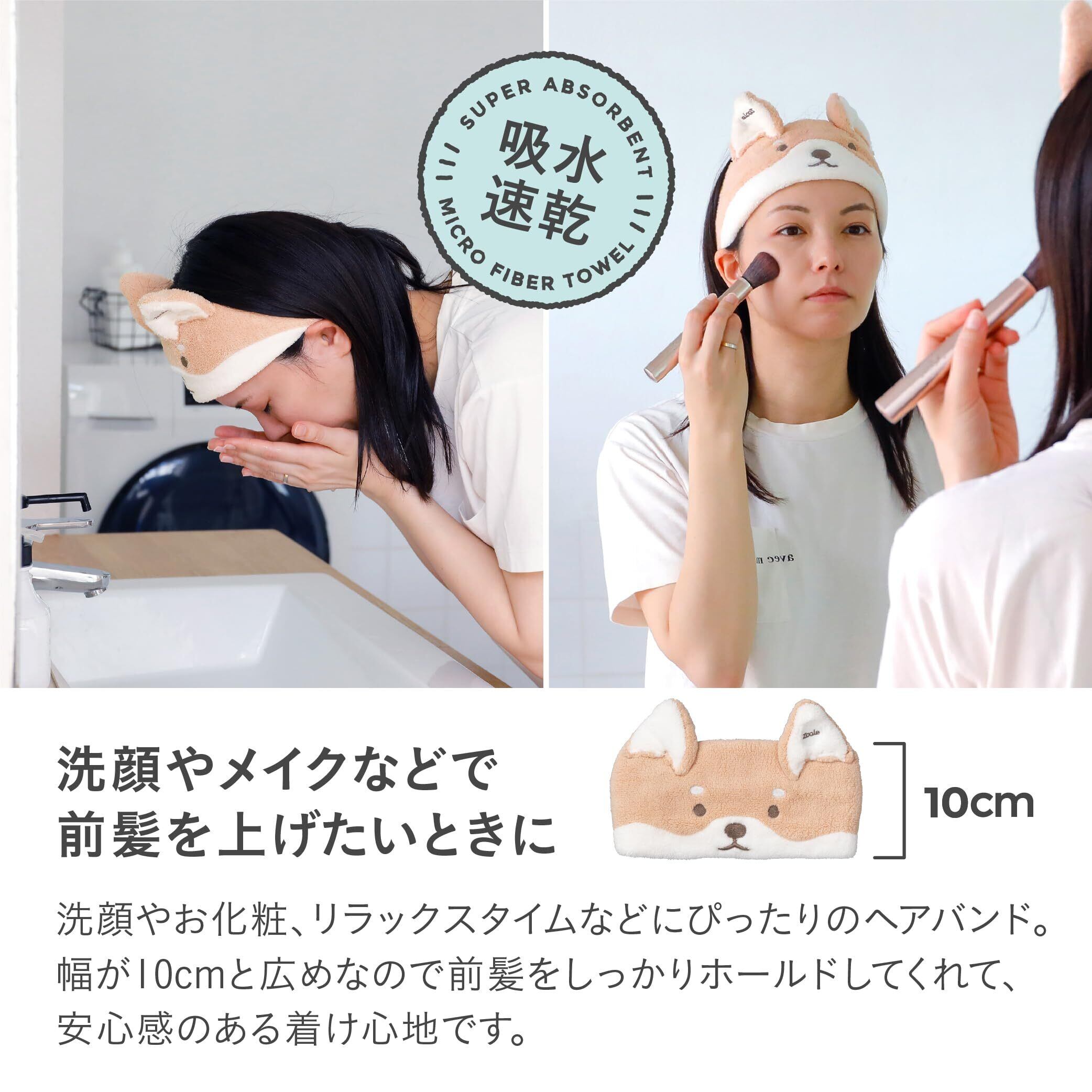 シービージャパン ヘアバンド 吸水速乾マイクロファイバー 綿の3倍 [頭囲44-66cm] 柴犬 洗顔 プール お風呂 マシュマロ肌触り 吸水アニマルヘアバンド Zooiefam