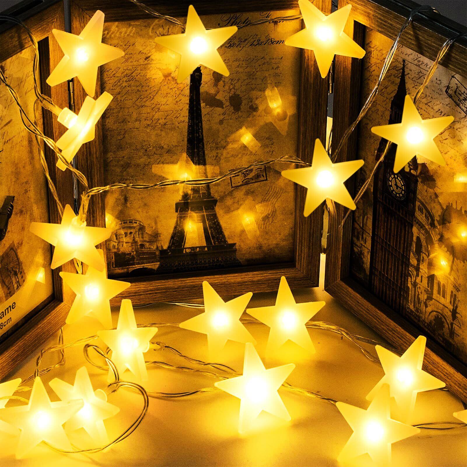 星型 おしゃれ LED フェアリーライト 電池式 星型 省エネ 8種照明モード 防水IP44 クリスマスツリー飾り カーテンライト 飾りスター ガーデン・イベント・パーティー・結婚式・学園祭最適 (ウォームホワイト/4.5m /30球) クリスマスストリングライト