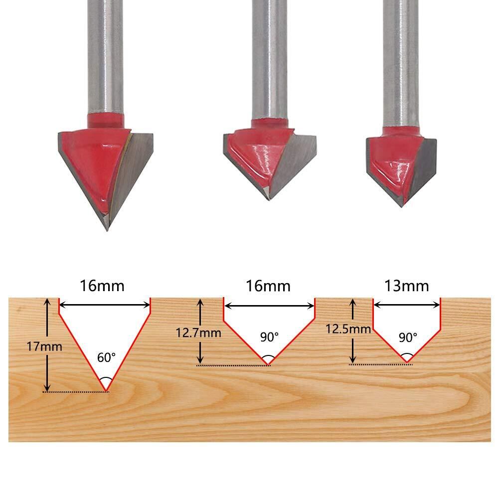 3個セット v溝ルータービット 超硬トリマ 3D CNC彫刻木工V型フライスカッター 彫刻ビット 6mmシャンク径 (60+90度)