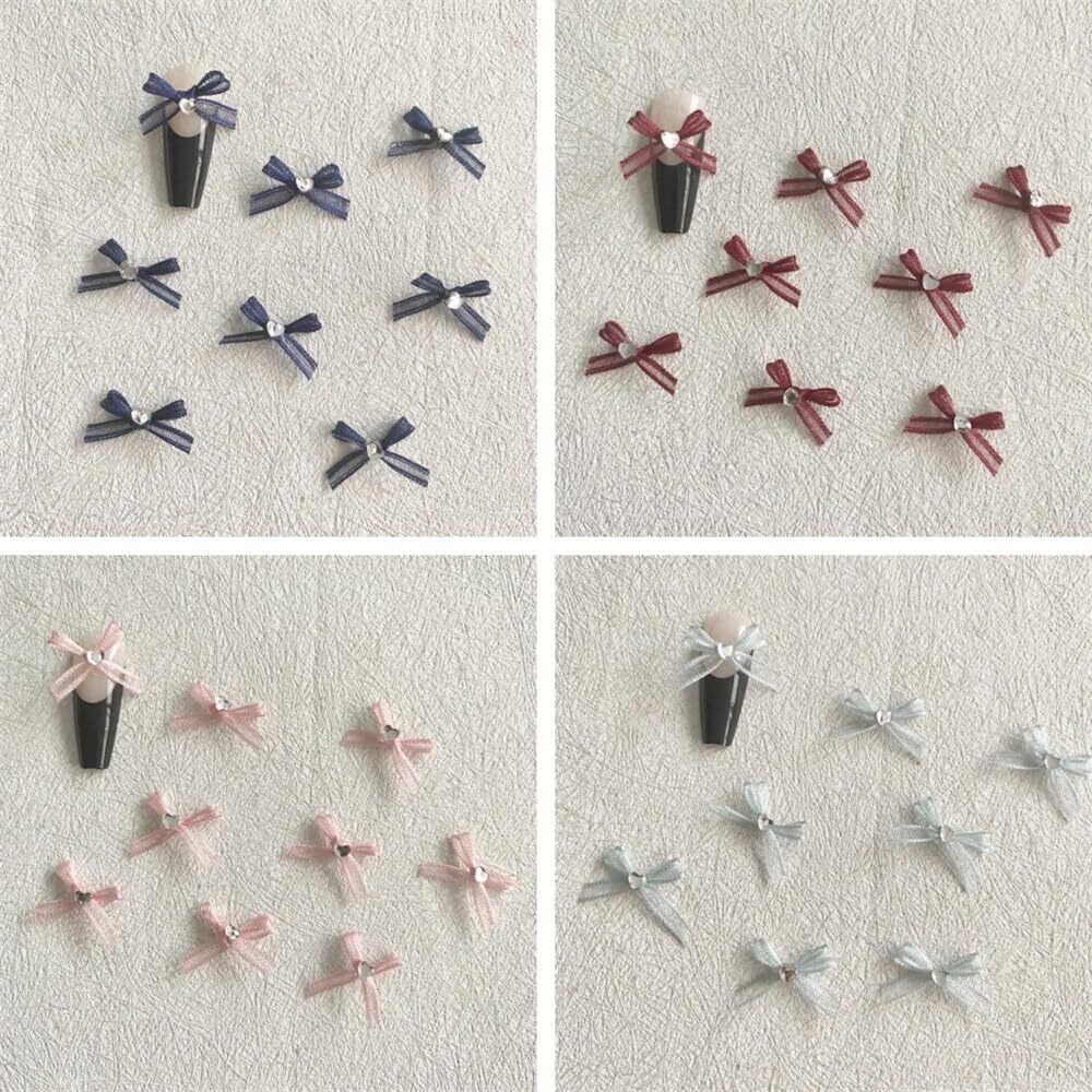様々な形のリボンネイルパーツ、色とバリエーションが豊富、ネイル装飾用にお勧め!