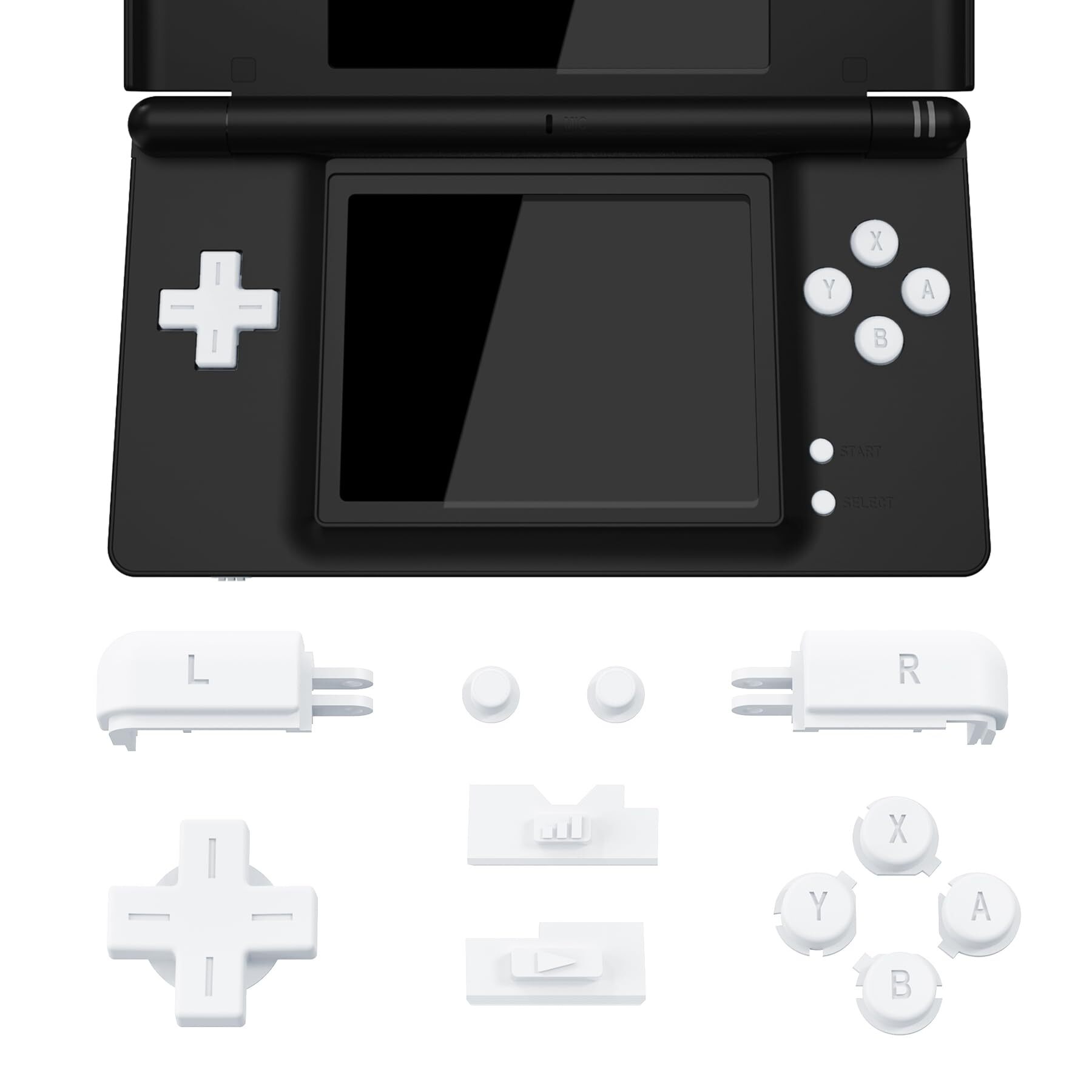 eXtremeRate ds liteコントローラーに対応用交換フルセットボタン、ニンテンドーds lite NDSL用カスタムDパッドABXY/スタート/セレクト/RL/Power Volumeキー(本体は付属していません)【ホワイト】