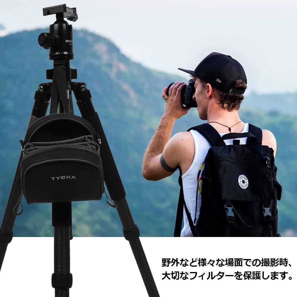 フィルターポッチ 防水 防塵 フィルターケース 取り外し可能な内側仕切り フィルター収納バッグ ストラップ付き 86mmまでの円型/角型フィルターに適用 TK025