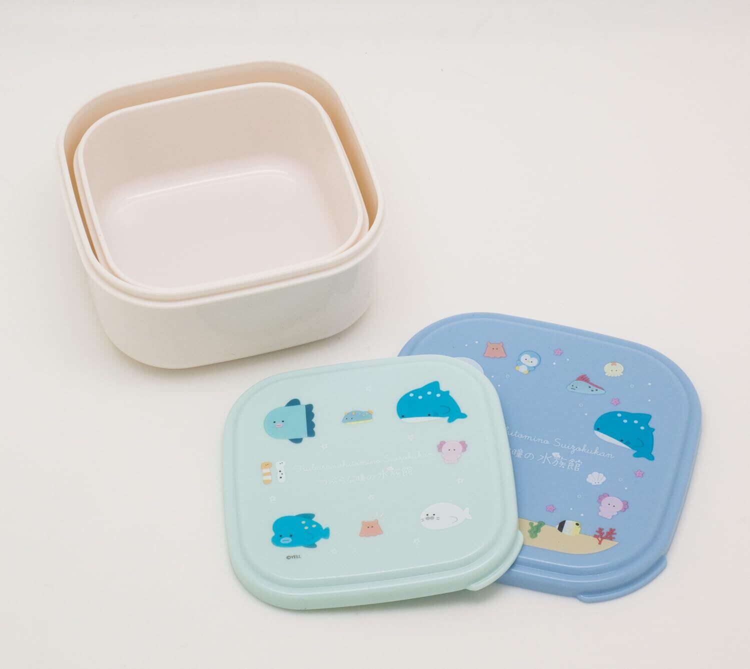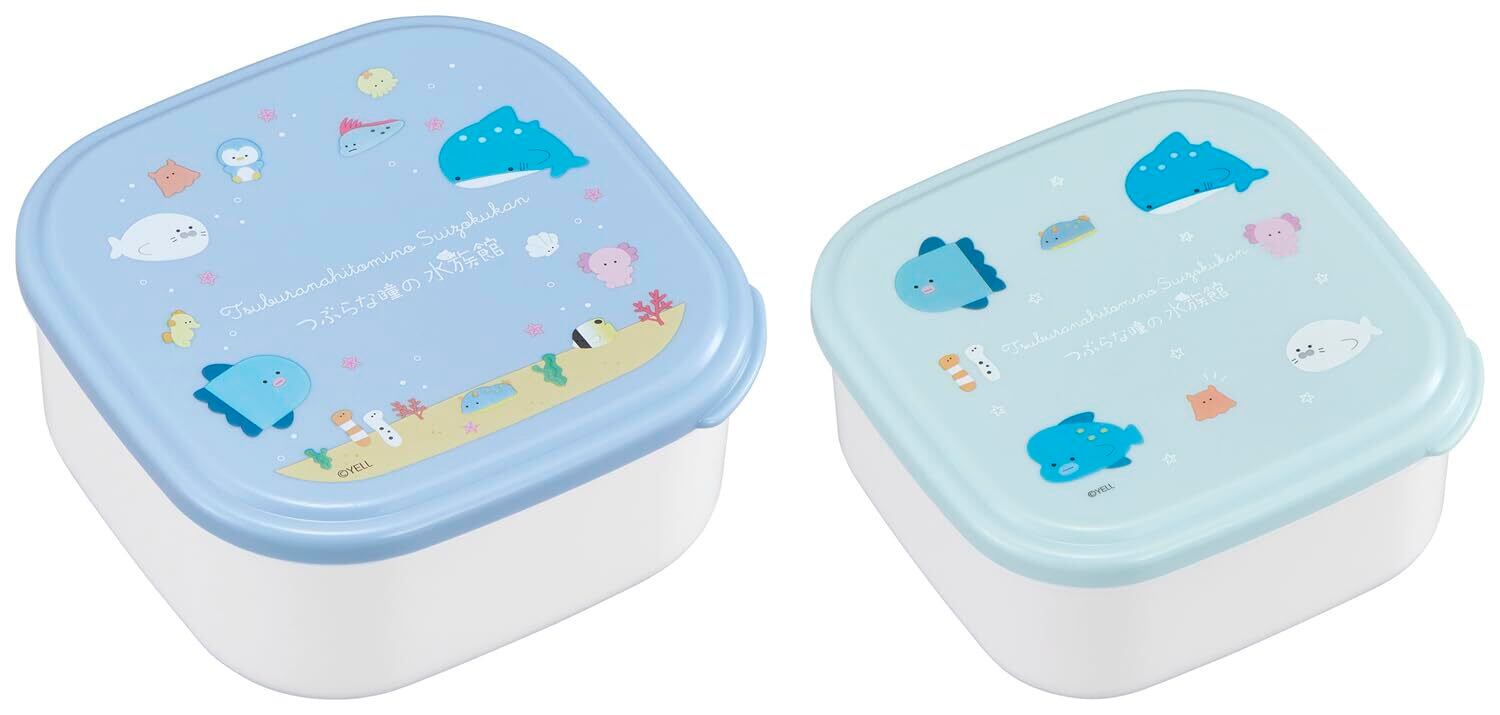 OSK(オーエスケー) 弁当箱 つぶらな瞳の水族館 シール容器2Pセット ブルー 360ml 550ml 日本製 電子レンジ対応 入れ子式 おしゃれ かわいい 抗菌 デザート用 フルーツ ちょい足し 小物入れ 男女兼用 子供用 大人用 学生 SSP-22