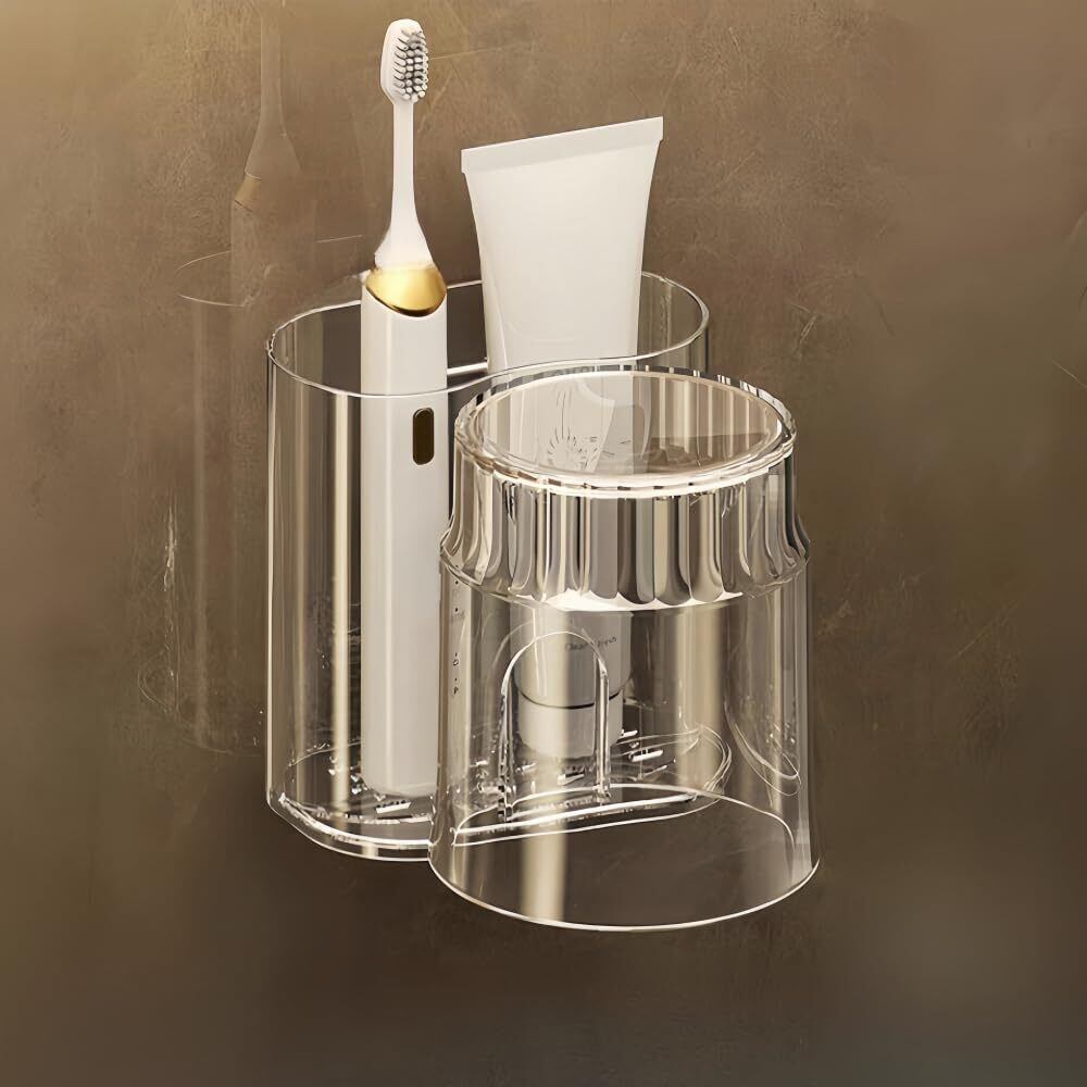 Jiawei うがいコップ歯磨きコップ歯ブラシスタンド歯磨きコップ 衛生的収納歯ブラシスタンド 置き型防錆PET素材環境にやさしい安全歯磨き粉 電動歯ブラシ収納 シェーバー 洗顔フォーム 多機能受け皿付き (透明色です)