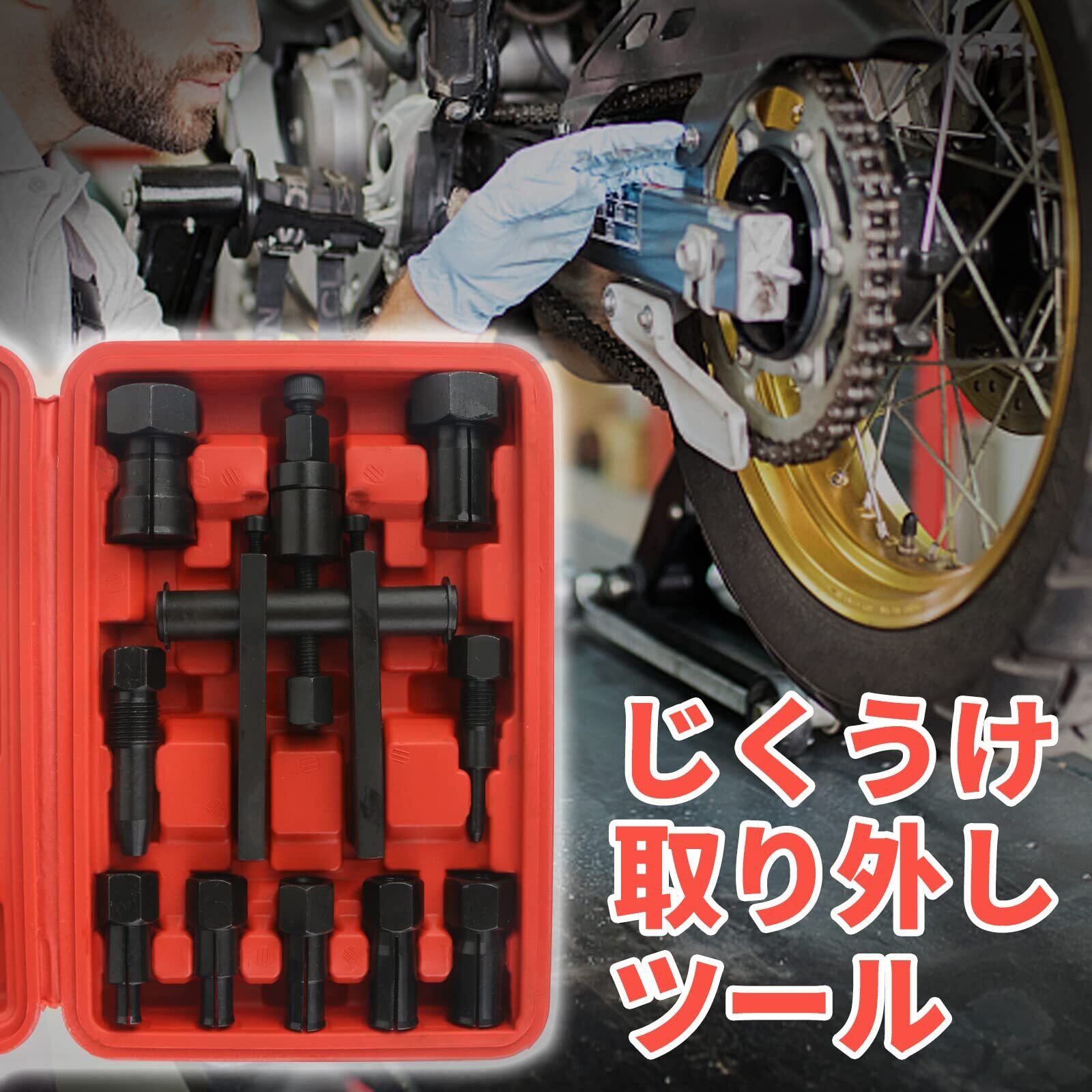 パイロットベアリングプーラー工具 セット 8-29mm 内掛け対応 10ピース プーラー 工具 バイク用 ギヤプーラー 2本爪 ベアリングリムーバー ツールケース付き