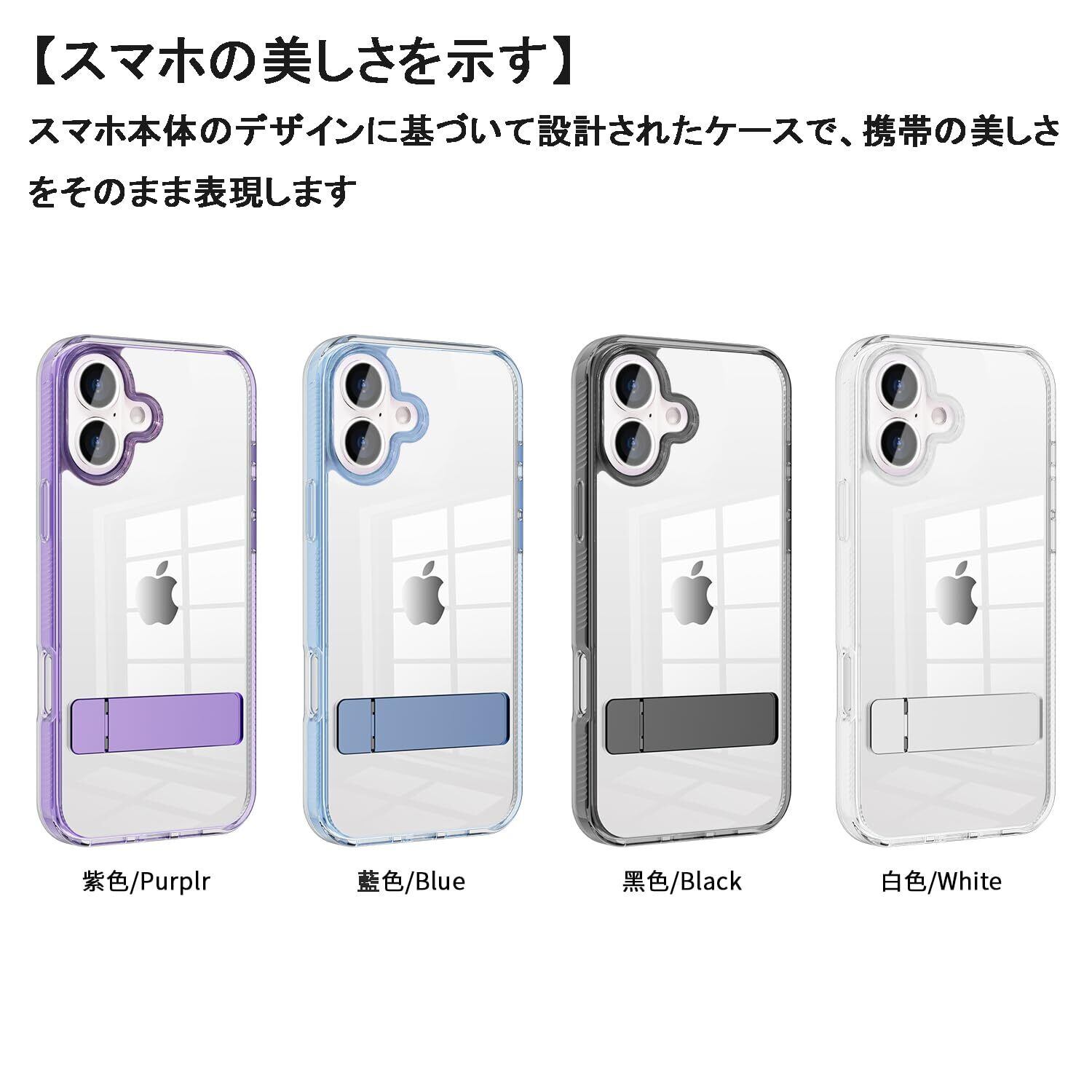 【極限透明感・機能スタンド】スマホケース 対応 iPhone16 クリア ケース スタンド機能 (メタルキック 3wayスタンドモード) 衝撃吸収 黄変防止/擦り傷防止 耐久性 薄型 軽量 スマホケース アイフォン16 対応 カバー (クリア)