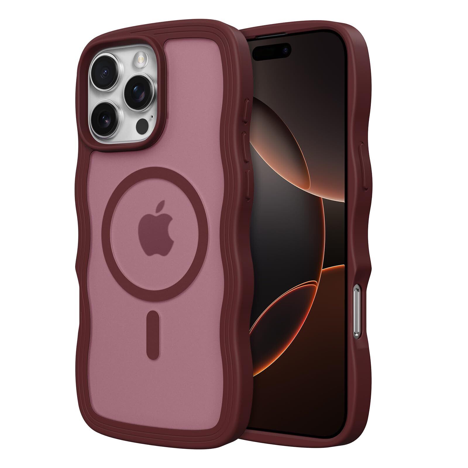 ZTOFERA iPhone 15 Pro Maxケース用,【MagSafe対応】キュートなウェーブの半透明マットスマホケース 女性用 女の子用 男性用 iPhone 15 Pro Maxケース,ワインレッド