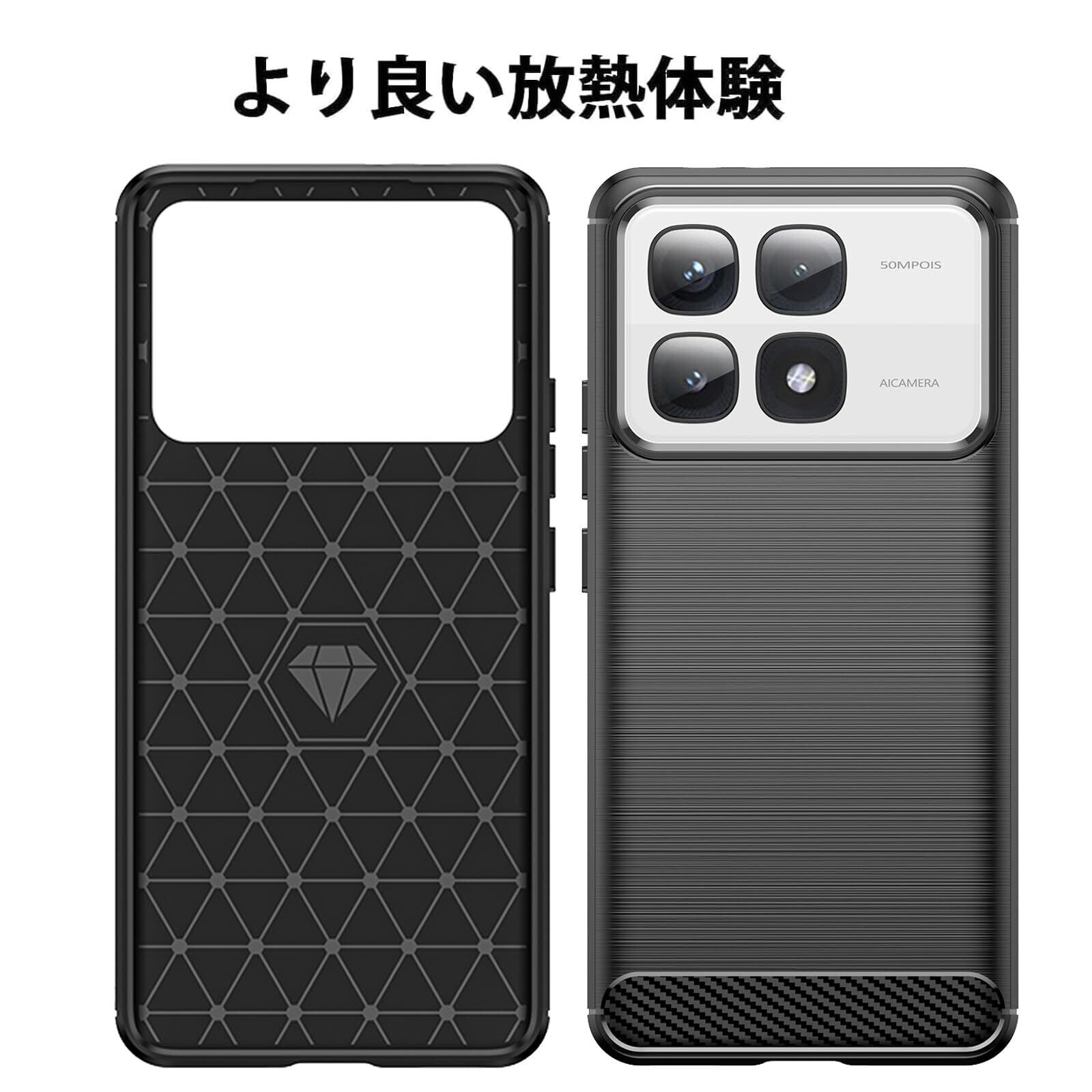 【UNEED】xiaomi 14t pro 用の スマホケース XiaoMi 14T 用の ケース カバー ケース 炭素繊維カバー (素材/TPU) 指紋防止 滑り止め 薄型 軽量 耐衝撃 簡易脱着 ソフトケース カラー:黒
