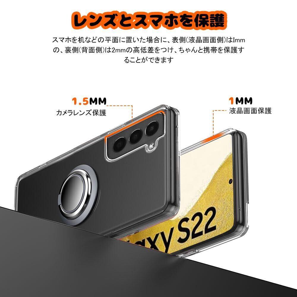 対応 Galaxy S22 SC-51C ケース SCG13 リング付き 透明 ギャラクシー S22 スマホケース リング クリア シリコン 薄型 スタンド機能 耐衝撃 耐久 滑り止め(Galaxy S22 クリア)