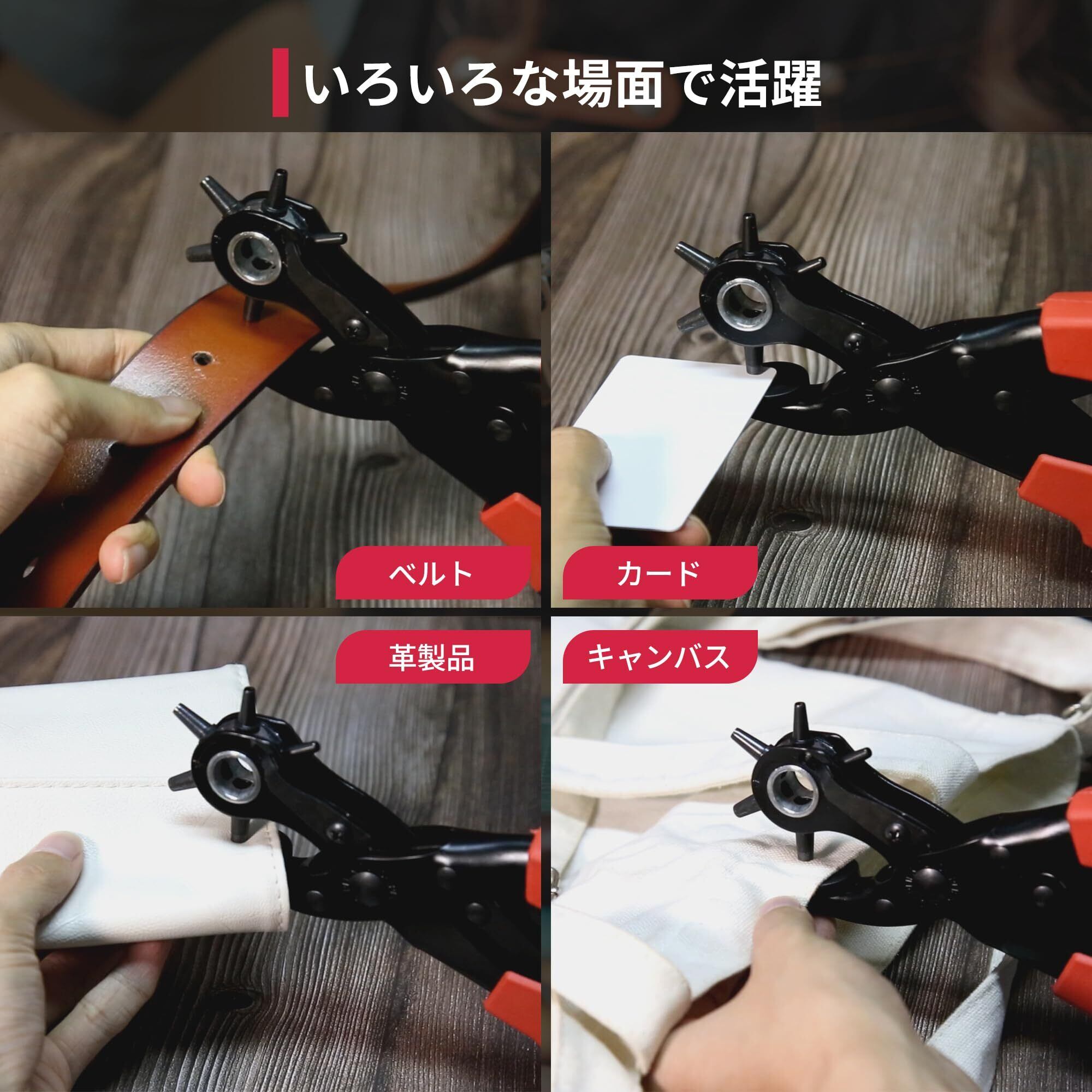 6種類の穴サイズで幅広い対応: XOOLのレザーパンチは、2mmから4.5mmまで6段階の穴サイズに対応しています。ベルト、バッグ、時計バンド、ペットの首輪など、簡単に調整可能。古くなったアイテムを捨てずに、新しい穴を素早く作成してお気に入りを復活させましょう。ファッションのDIYや日常のメンテナンスにも最適です。
