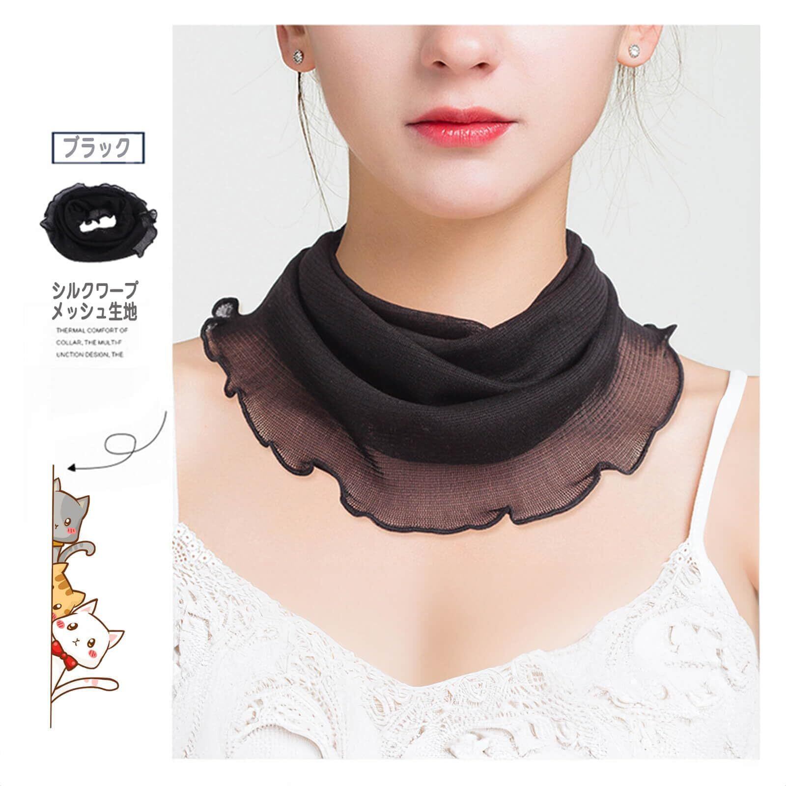 ネックカバー: 夏の強い日差しから首元を守る必需品。100%シルク生地は吸汗性に優れ、常にサラサラ感を保ちます。ストレッチチュールネット素材を採用しているため、夏でも快適に日差しを遮り、オシャレに日焼け防止。