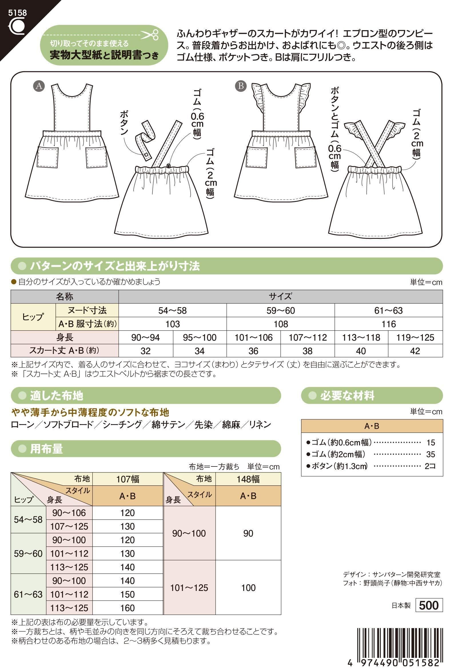 サン・プランニング 型紙 パターン こどもエプロンドレス 5158
