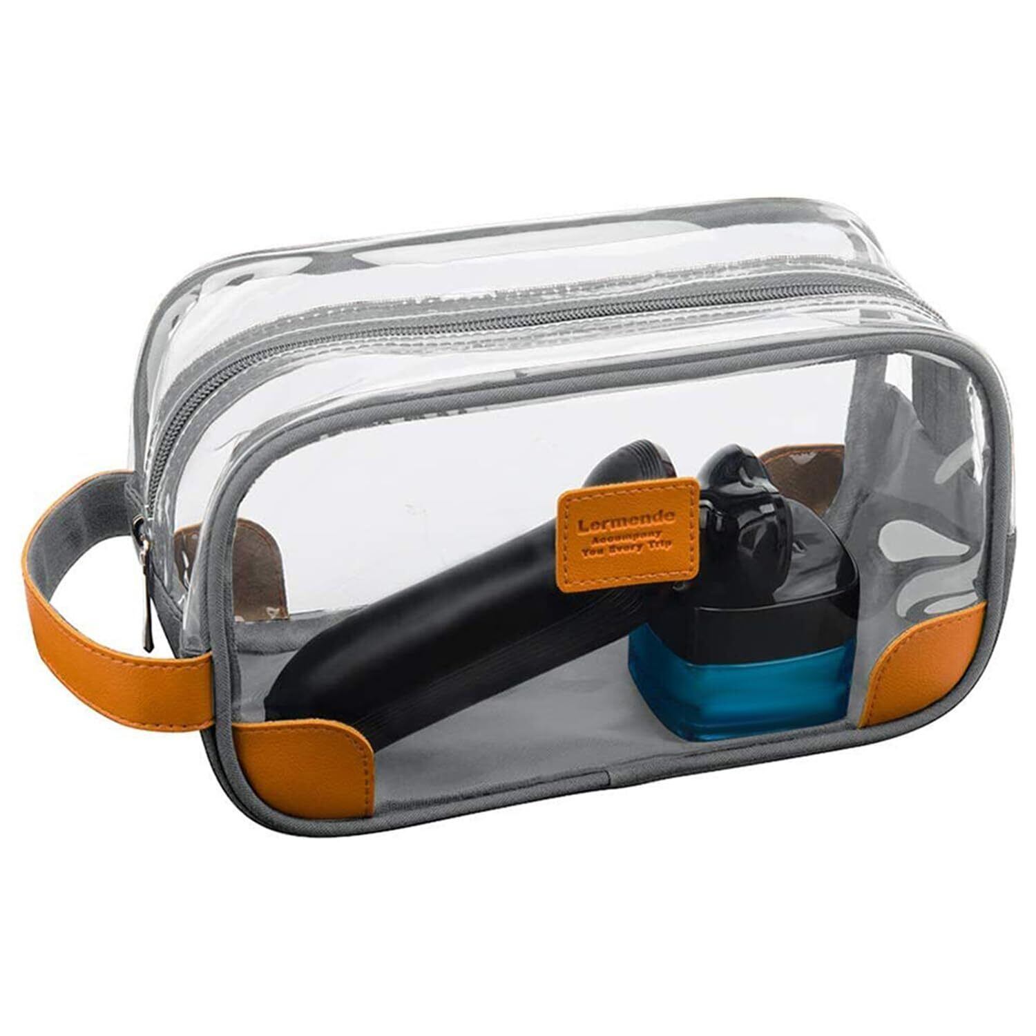 【特価商品】Lermende トイレタリーバッグ 、透明シェービングドップキット メンズ用 旅行用ポーチ ハンドストラップ付き 透明化粧ポーチ 男女兼用 洗面用具 ポーチ (グレー)