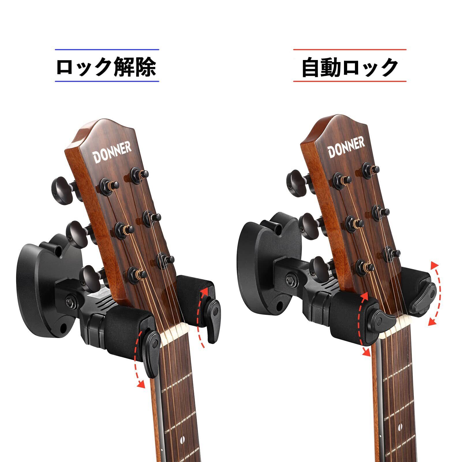 Donner ギターハンガー 壁掛け 自動ロック ネジ付 ギターフック 荷重10KG 高強度 ギターホルダー ベース/エレキギター/マンドリン適用 ブラック (3個)